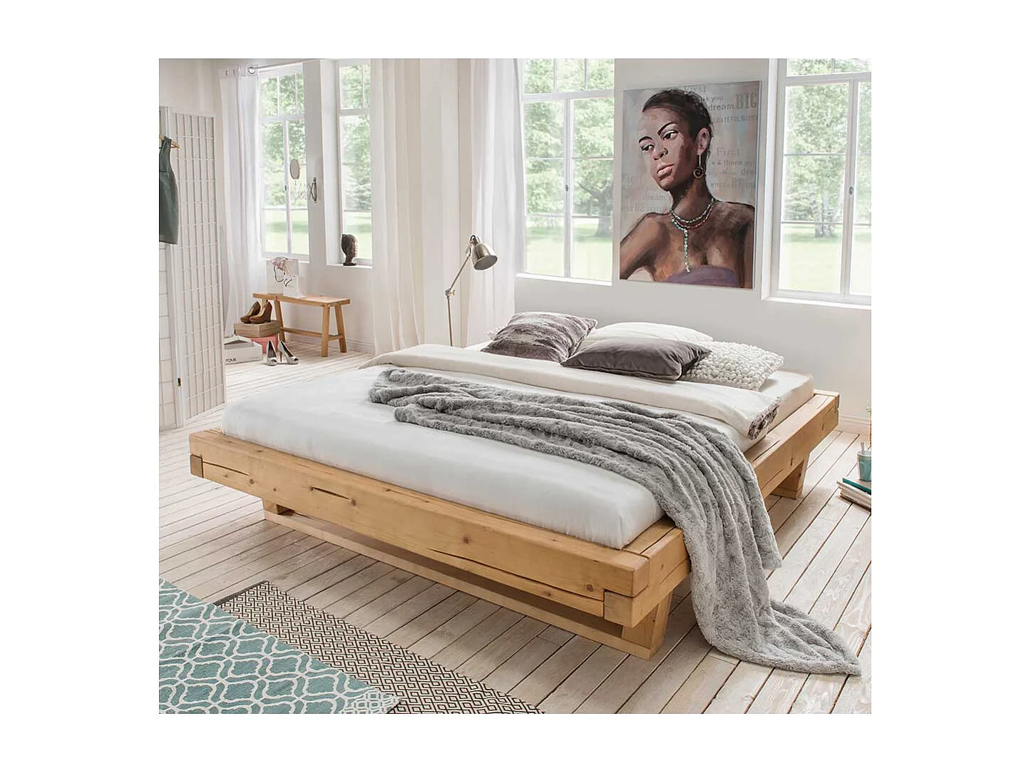 Massivholz Bettgestell aus Fichte Mittelsteg