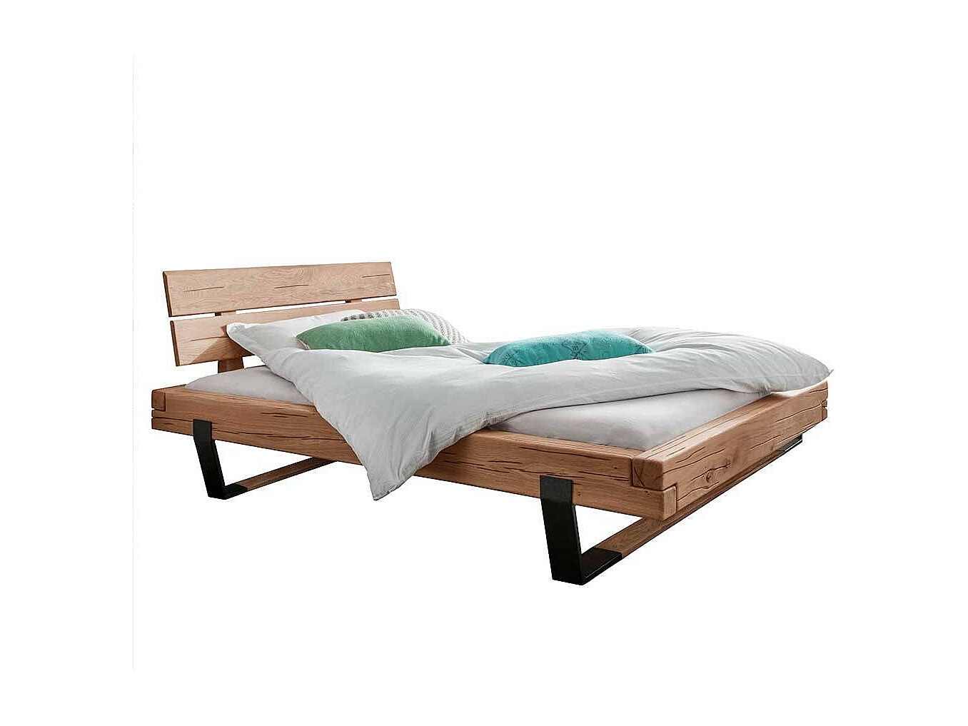 Massivholz Bettgestell aus Wildeiche Metallkufen mit Holz