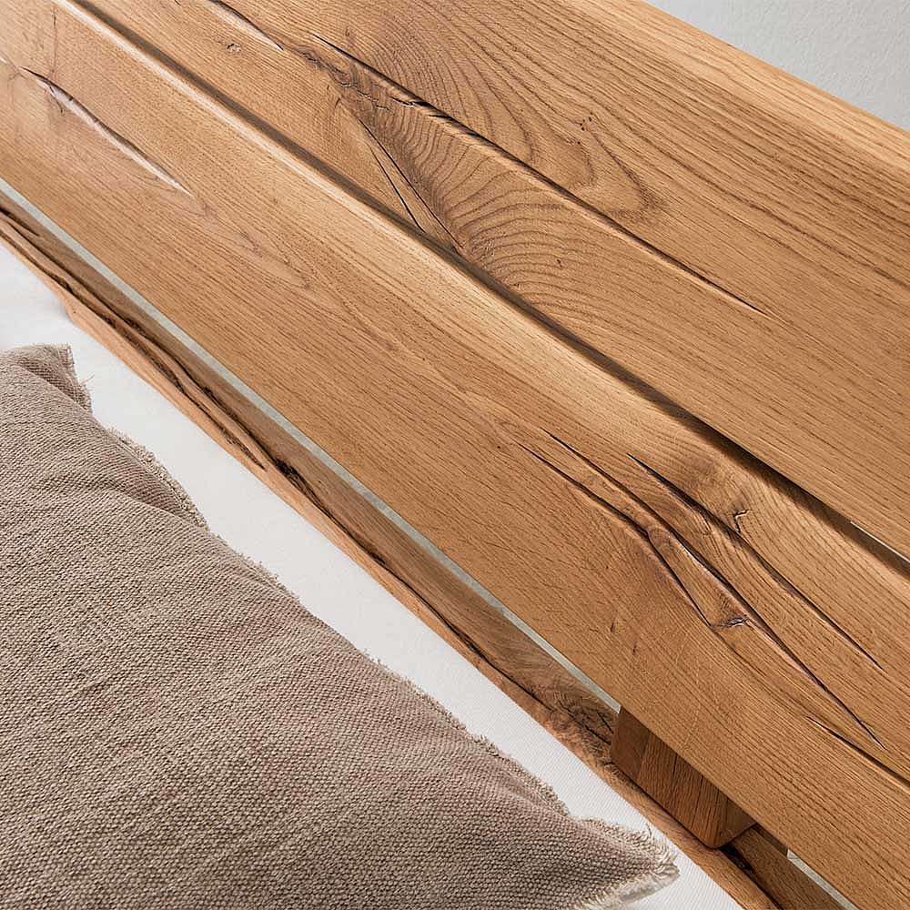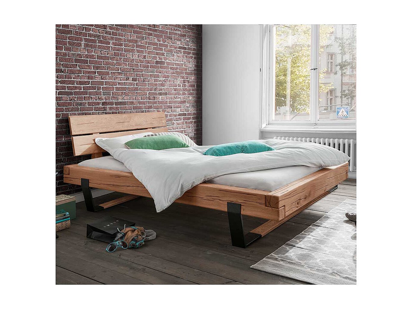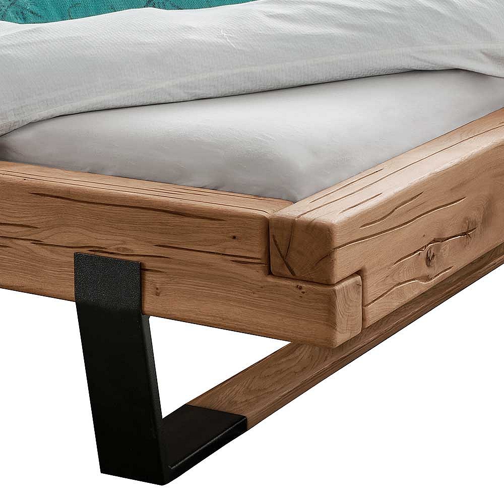 Massivholz Bettgestell aus Wildeiche Metallkufen mit Holz