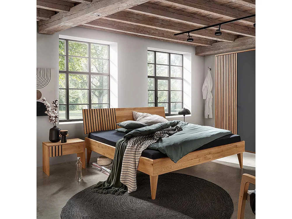 Massivholz Bettgestell in modernem Design 45 cm Einstiegshöhe