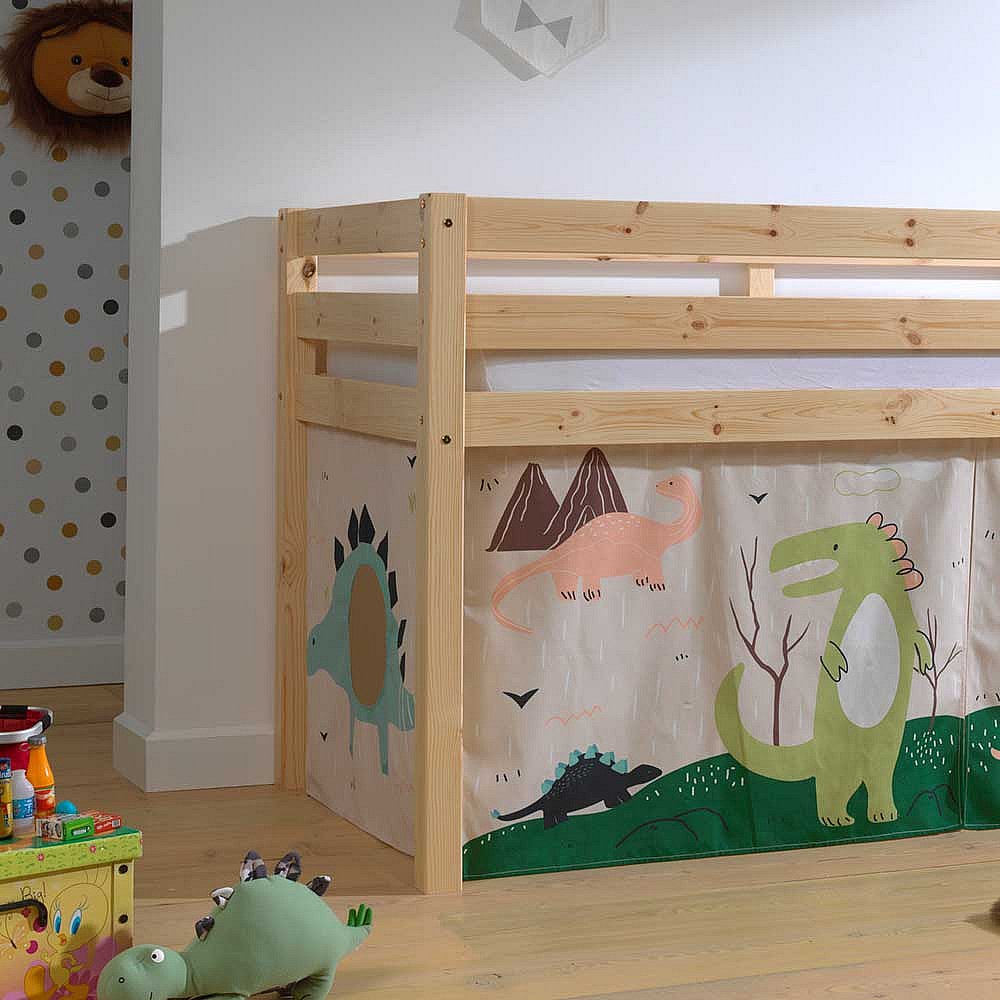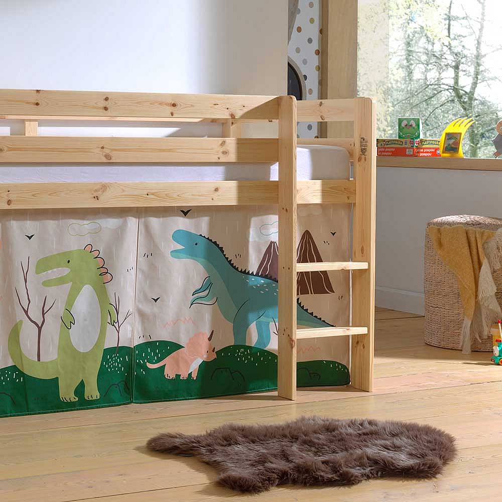 Massivholz Hochbett aus Kiefer Dinosaurier Vorhang Set