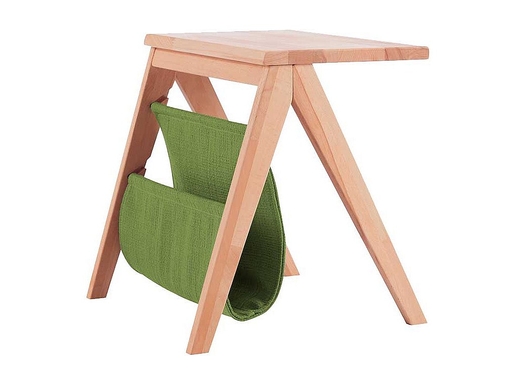 Massivholz Nachttisch aus Kernbuche Ablage in Gr�n Microvelour