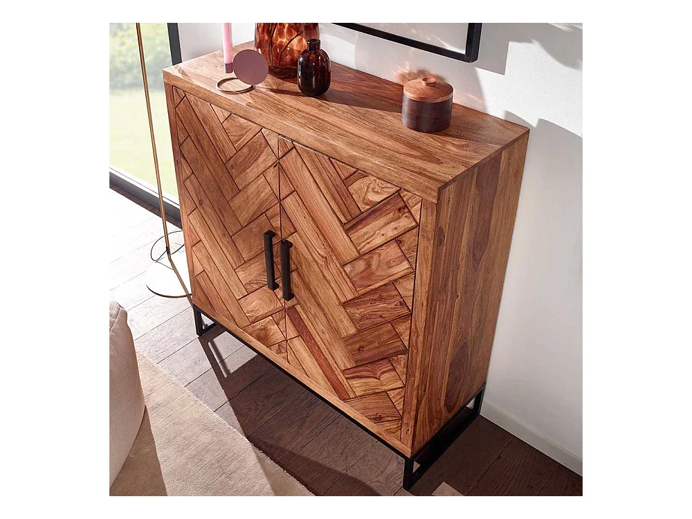 Massivholz Schuhschrank aus Sheesham und Metall Drehtüren