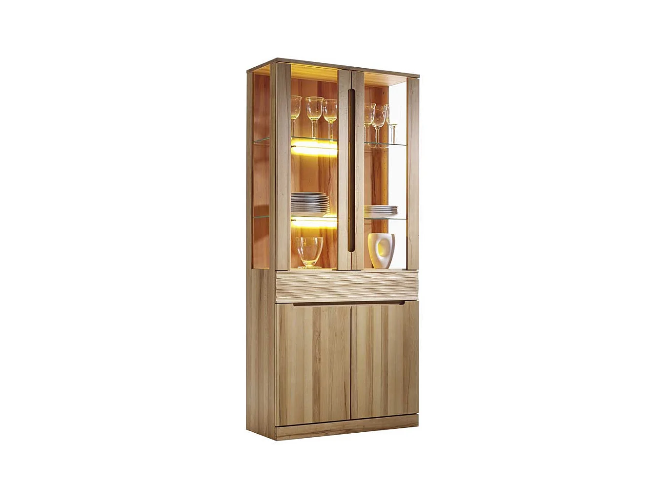 Massivholz Vitrine aus Kernbuche geölt LED Beleuchtung