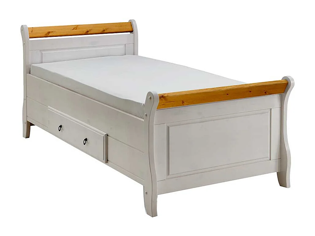 Massivholzbett aus Kiefer Weiß Landhaus Design