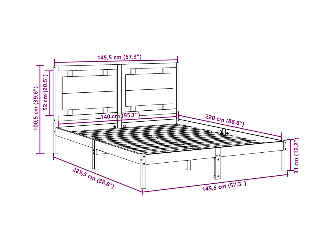 Massivholzbett Extra Lang ohne Matratze 140x220 cm