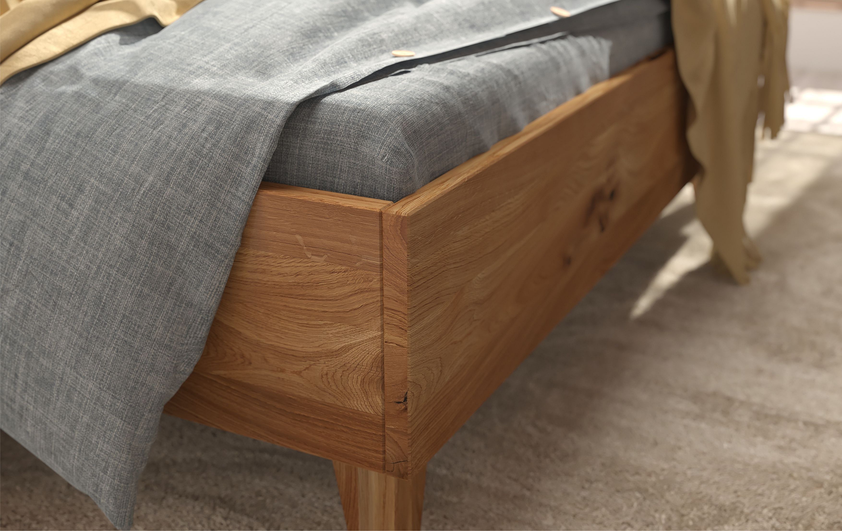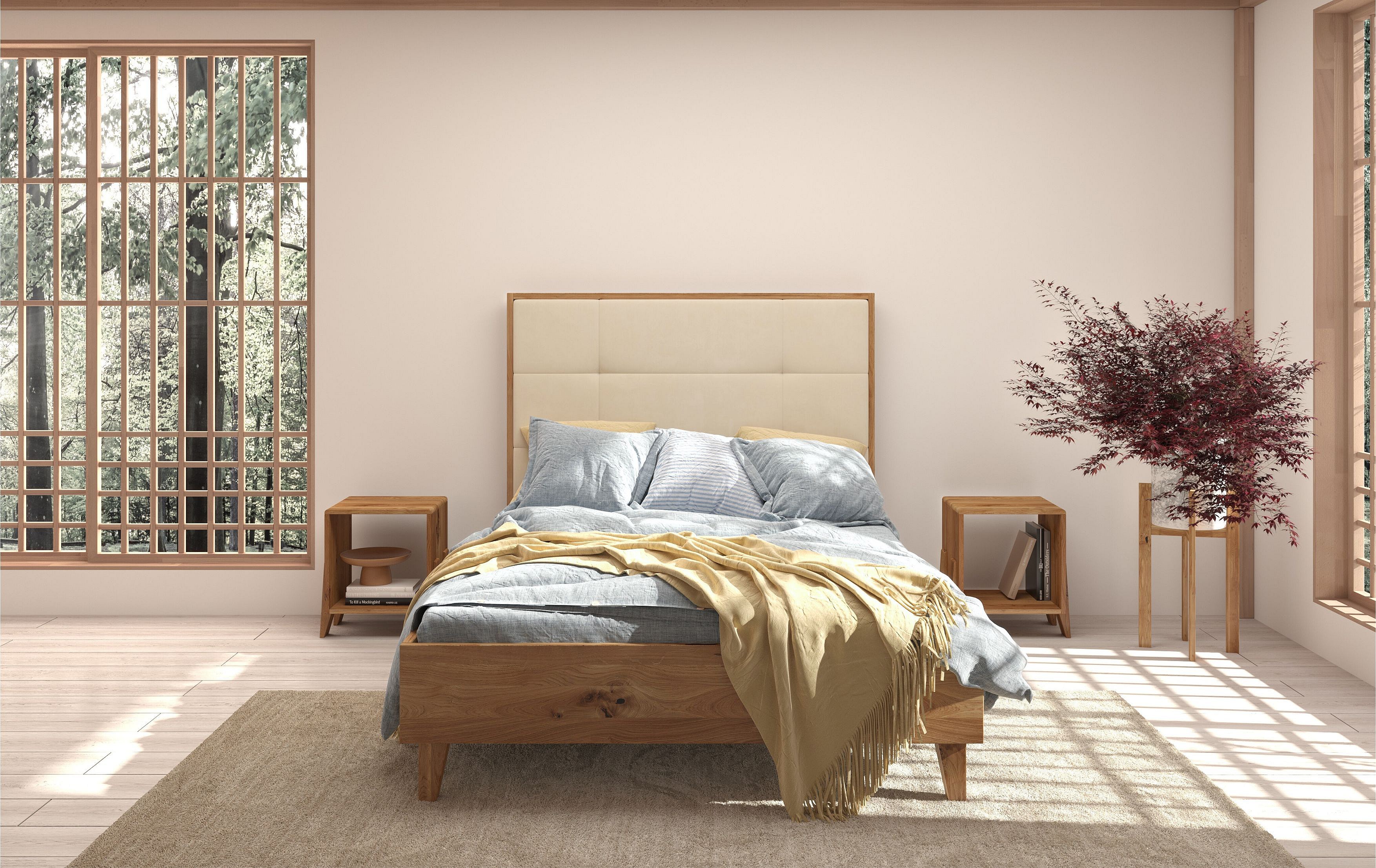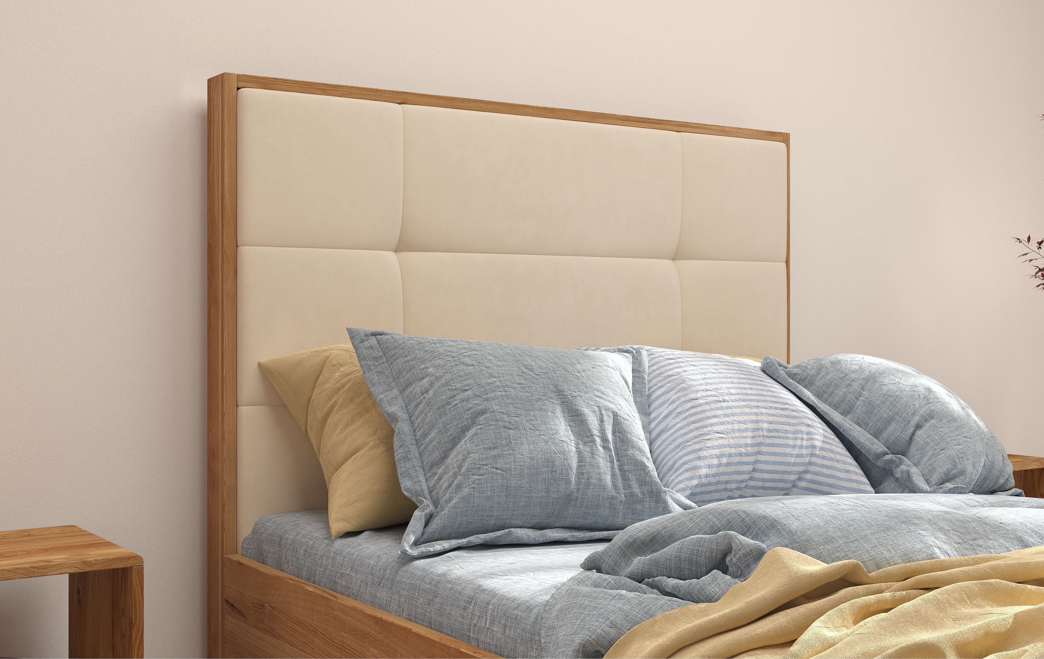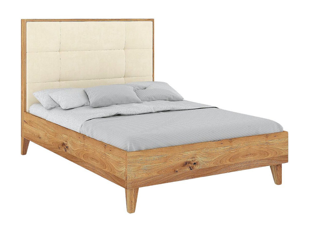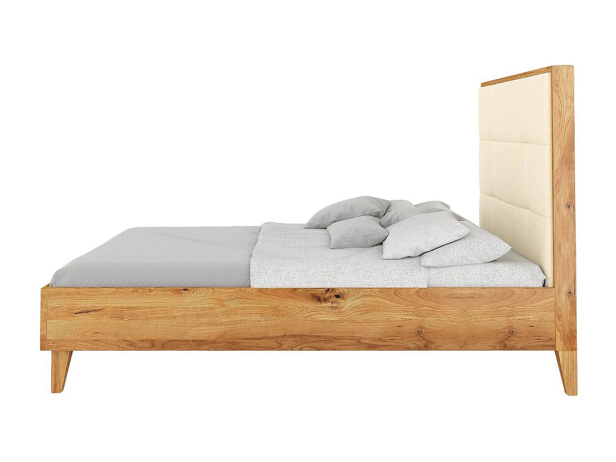 Massivholzbett Frida, gepolstertes kopfteil, eiche - lackiert, naturfarben/ecru, 160x200