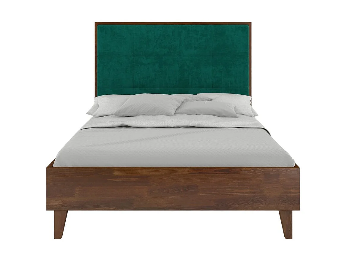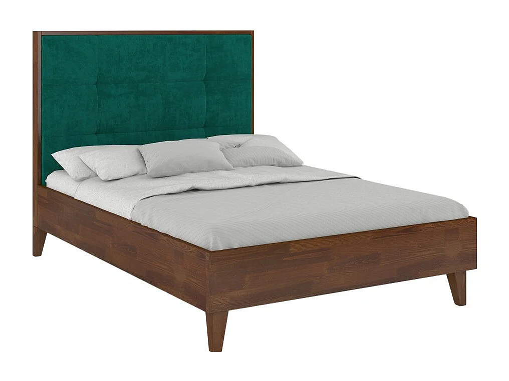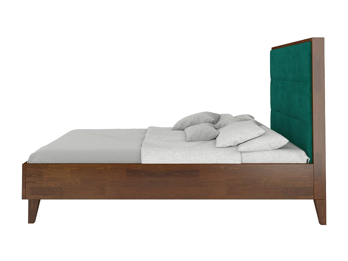 Massivholzbett Frida, gepolstertes kopfteil, kiefer - lackiert, nussbaumfarbe/grün, 160x200