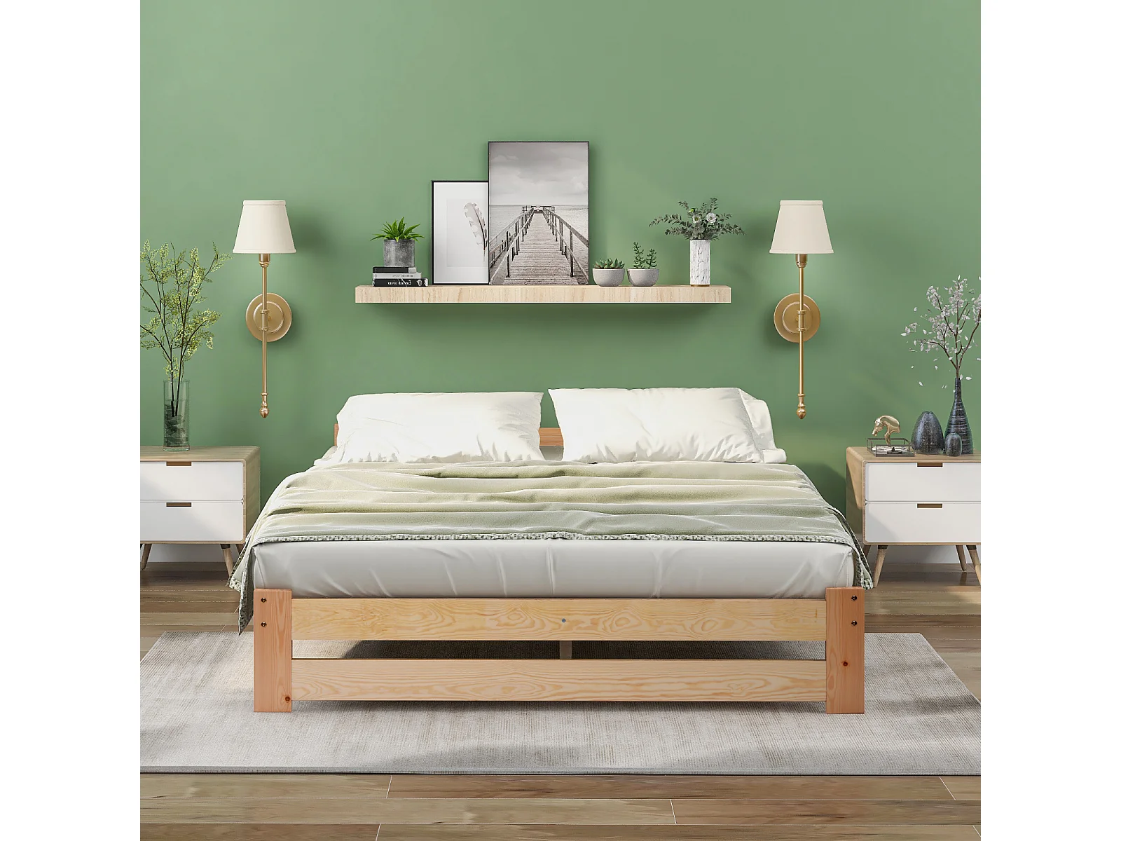 Massivholzbett, Futonbett, Natur Massivholzbett mit Kopfteil und Lattenrost, Natur (200x140cm)