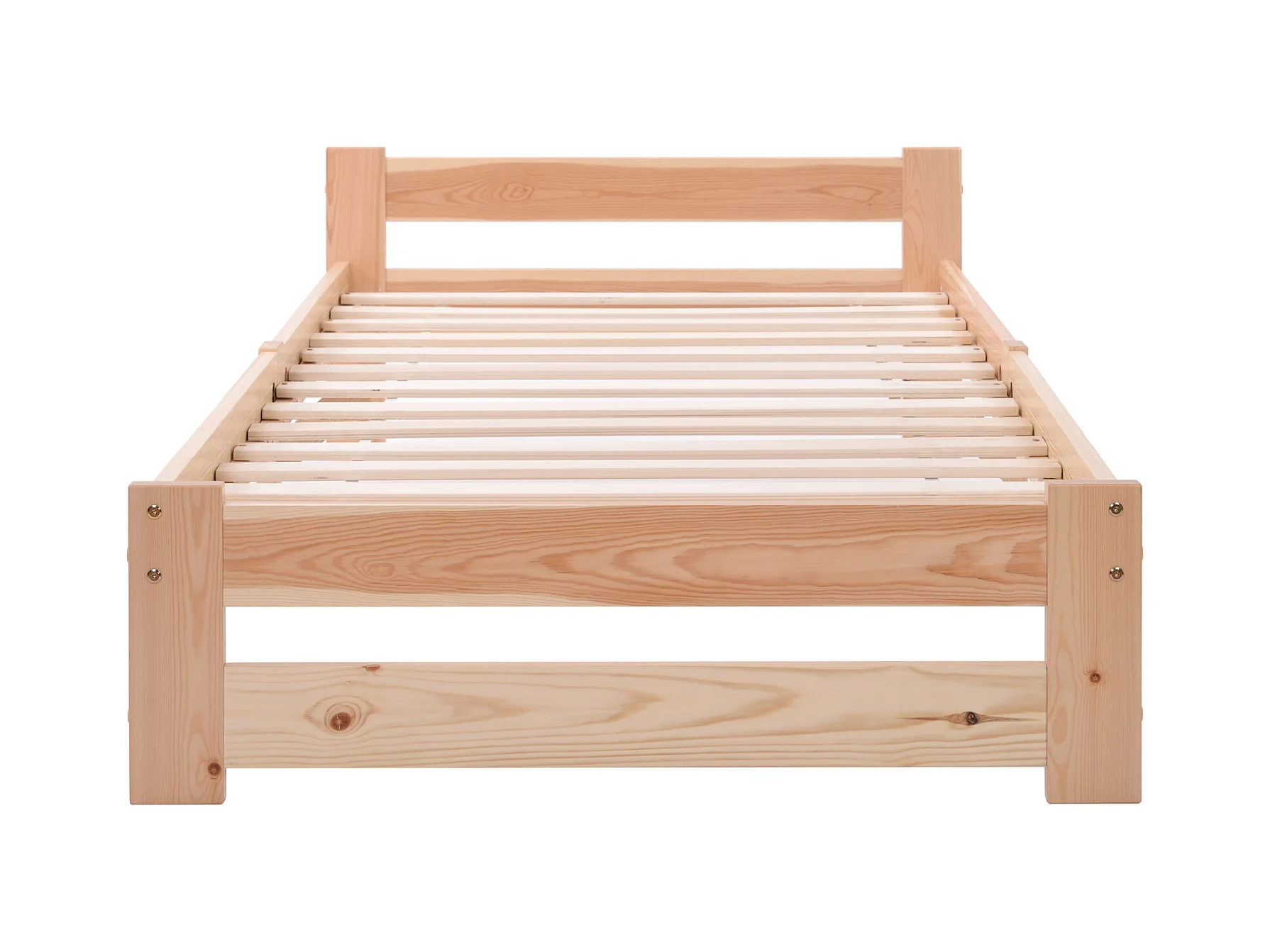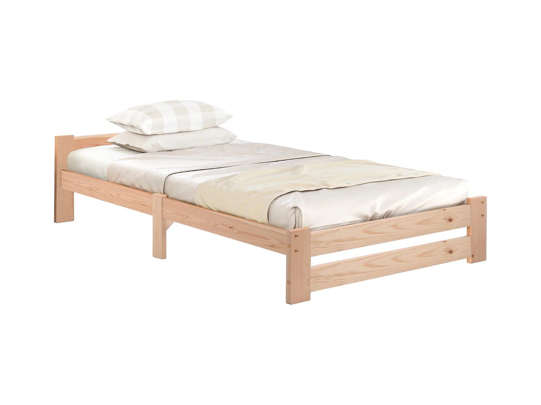 Massivholzbett, Futonbett, Natur Massivholzbett mit Kopfteil und Lattenrost, Natur (200x90cm)