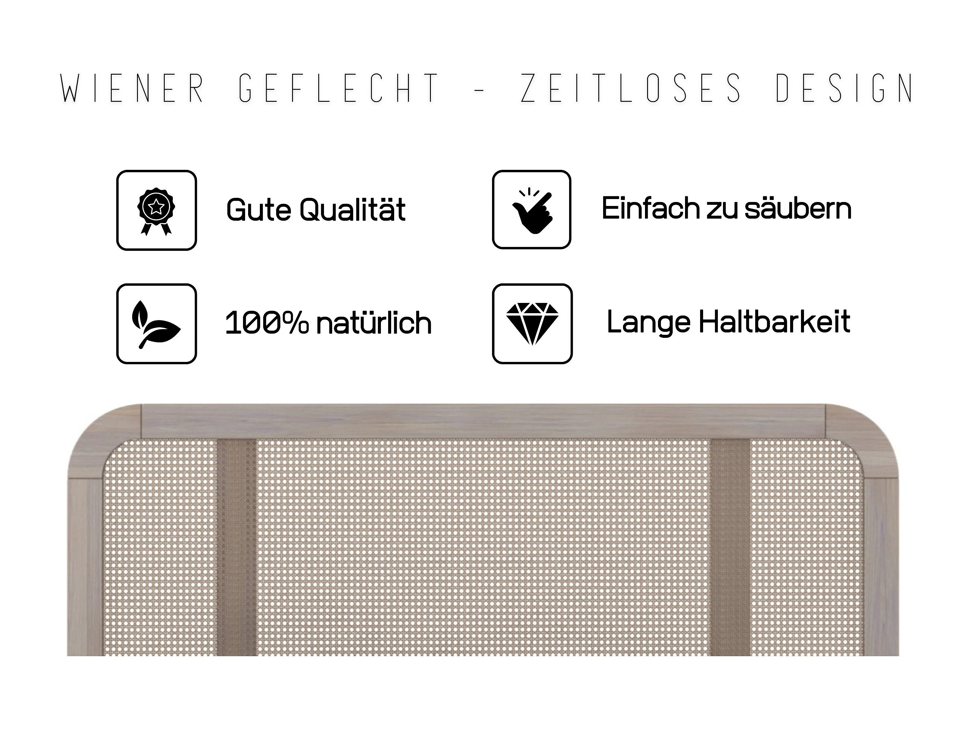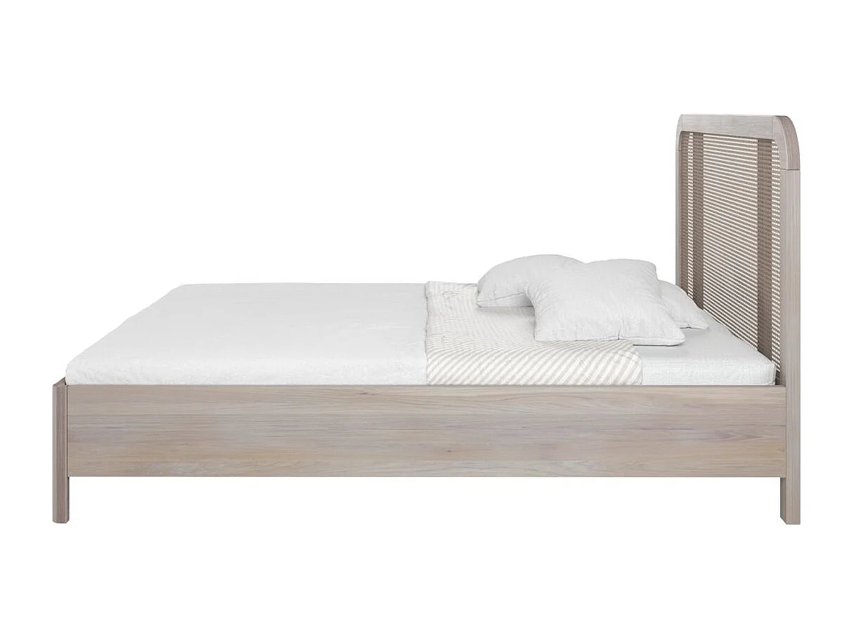 Massivholzbett Harmark, rattan - kopfteil, eiche gebleicht - geölt, 140x200