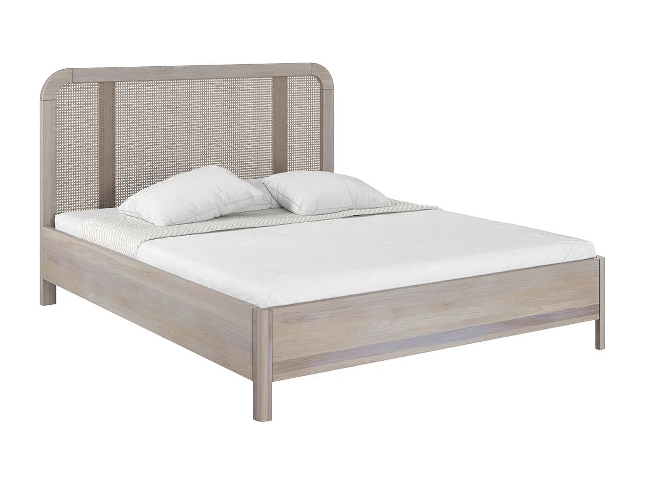 Massivholzbett Harmark, rattan - kopfteil, eiche gebleicht - geölt, 180x200