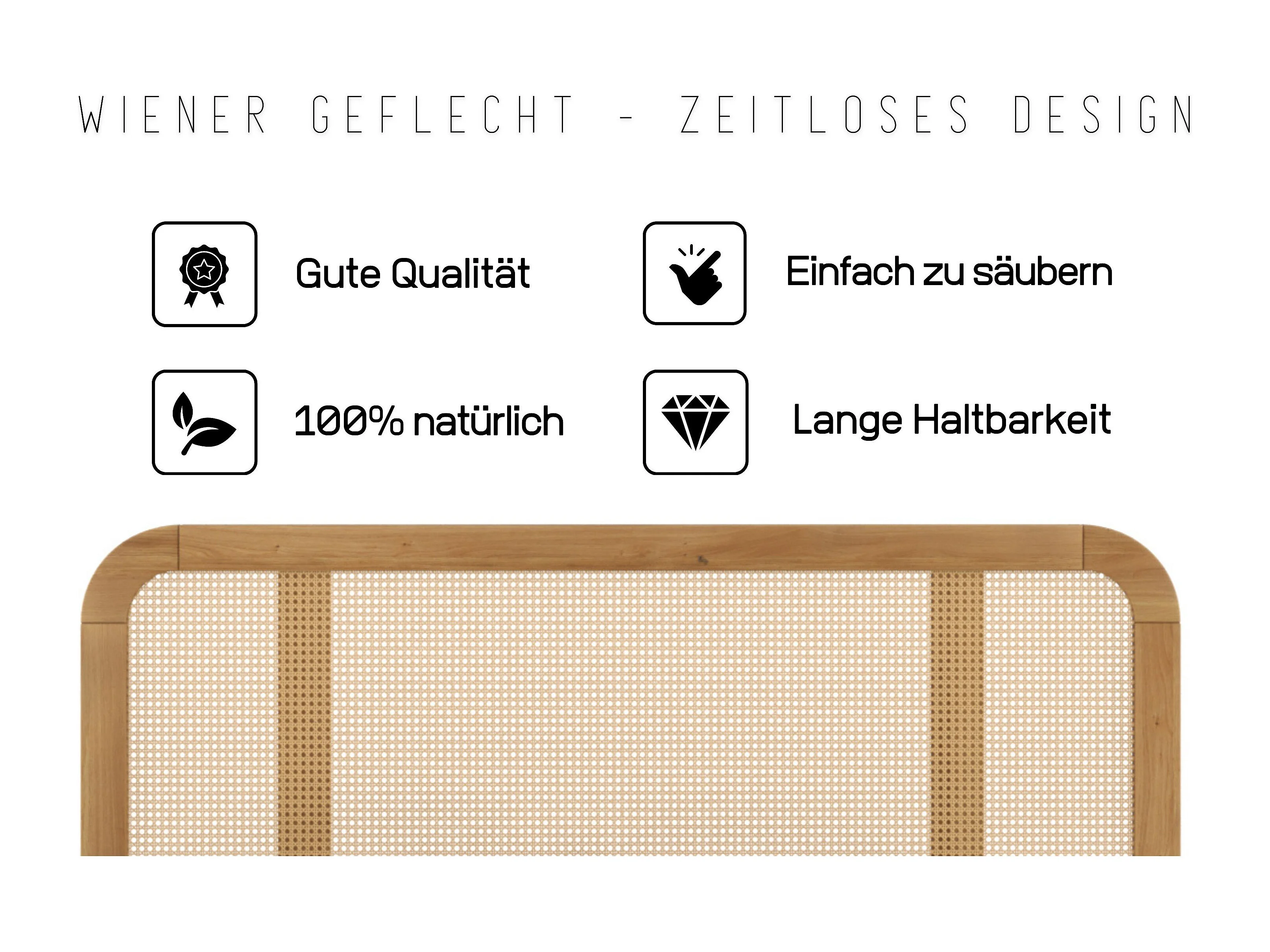 Massivholzbett Harmark, rattan - kopfteil, eiche - lackiert, naturfarben, 140x200