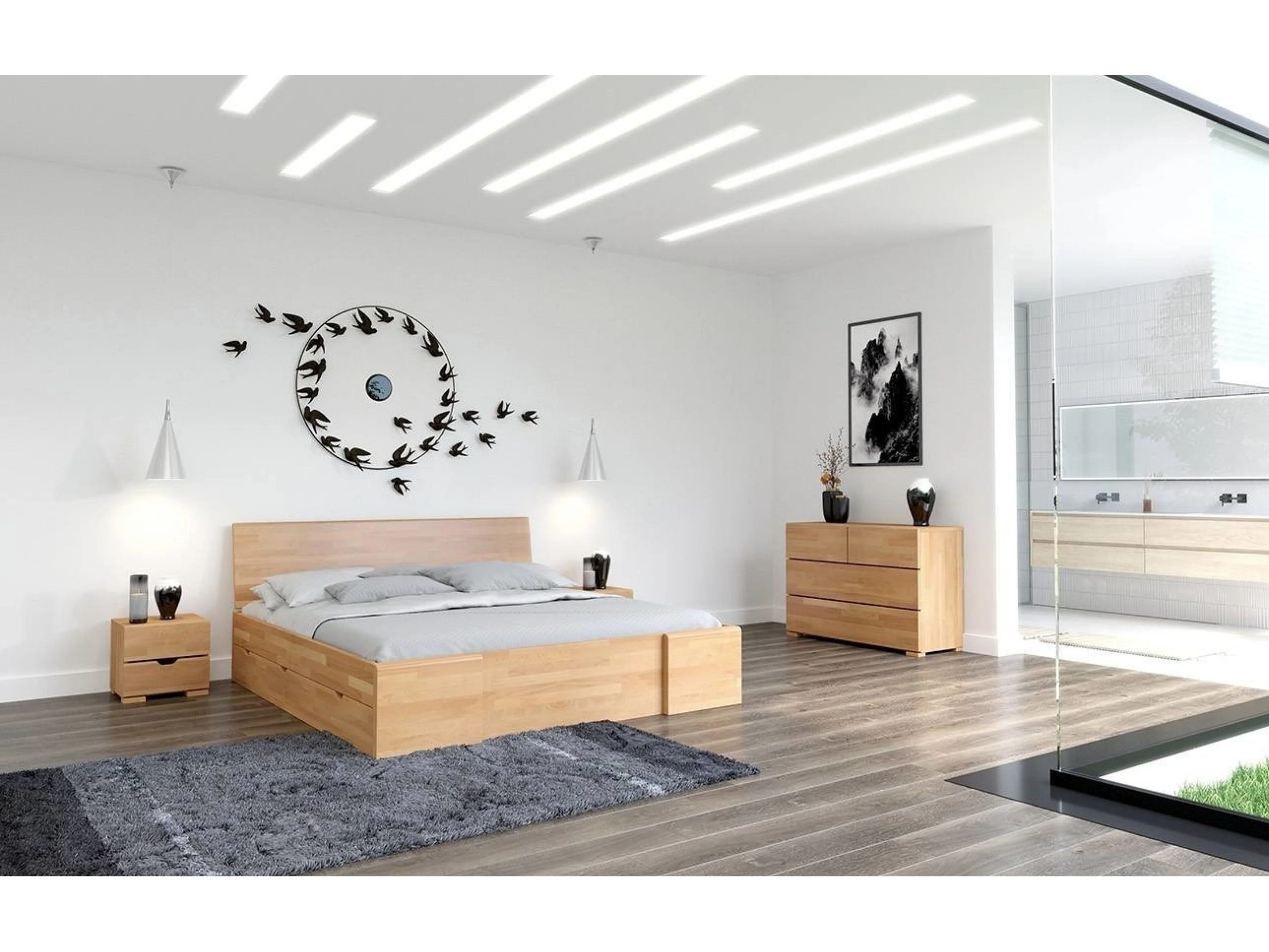 Massivholzbett Hessler mit schubladen, buche - lackiert, naturfarben, 140x200
