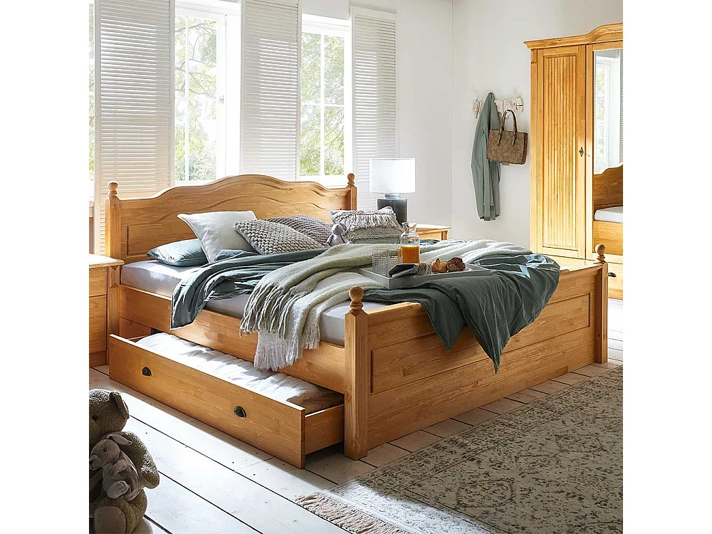 Massivholzbett im Landhausstil Kiefer gebeizt und geölt