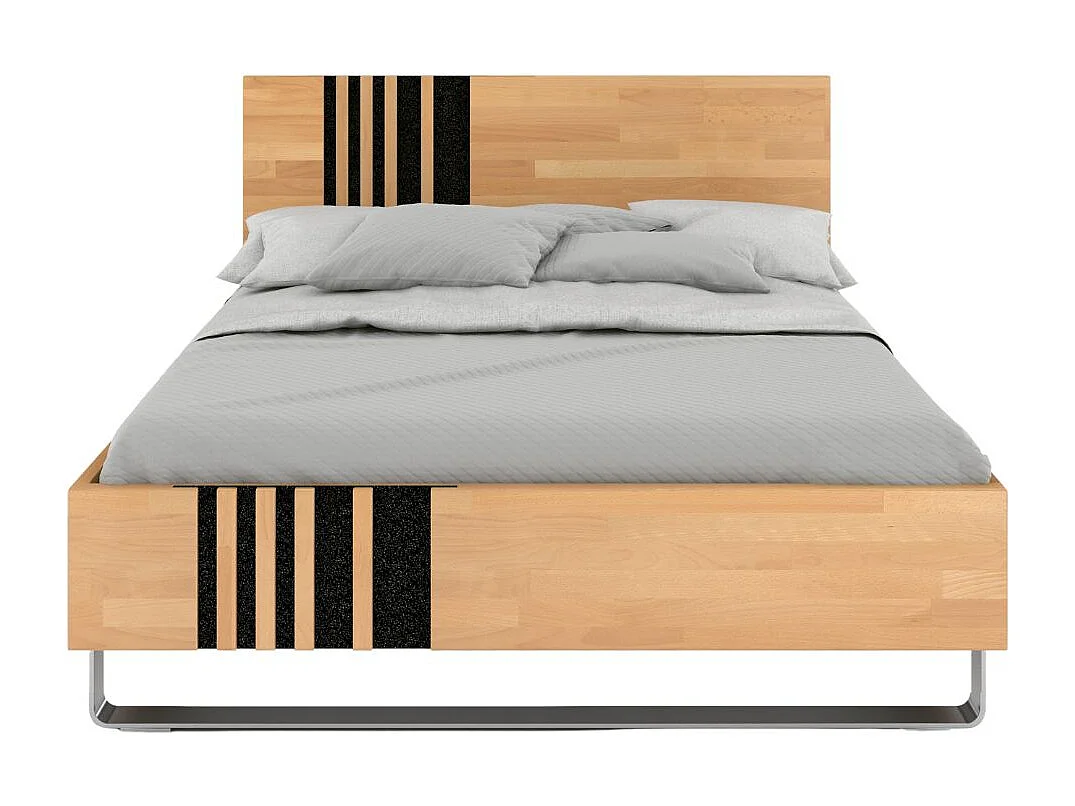 Massivholzbett Kielce mit metallfüßen, buche - lackiert, naturfarben, schwarz glas, 180x200