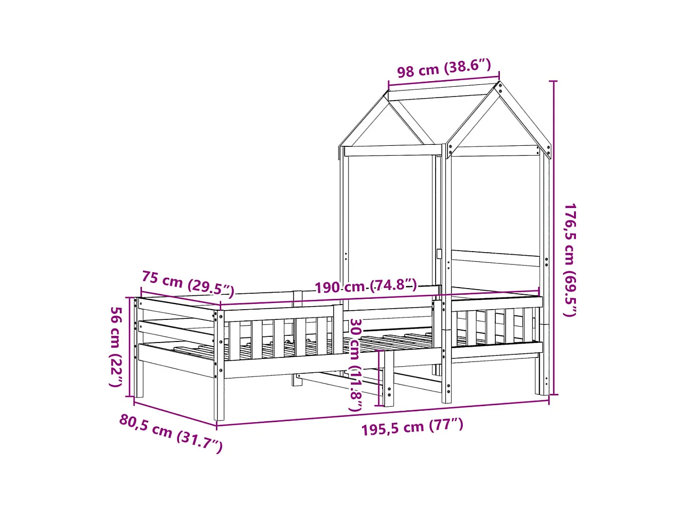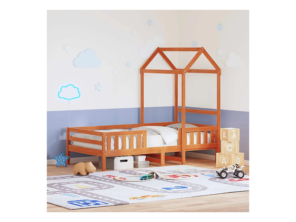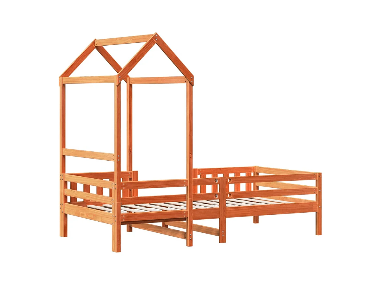 Massivholzbett mit Dach Wachsbraun 75x190 cm Kiefer