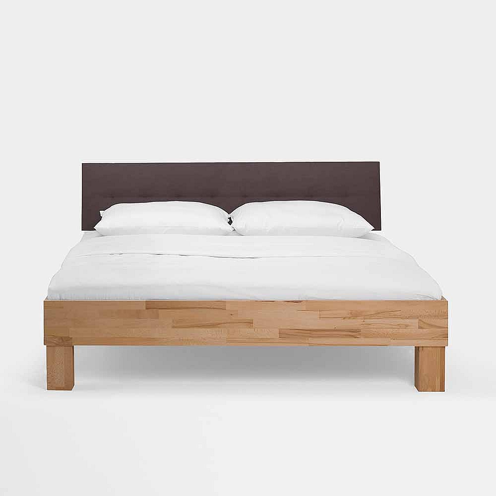 Massivholzbett mit gepolstertem Kopfteil in Dunkelbraun Kernbuche geölt