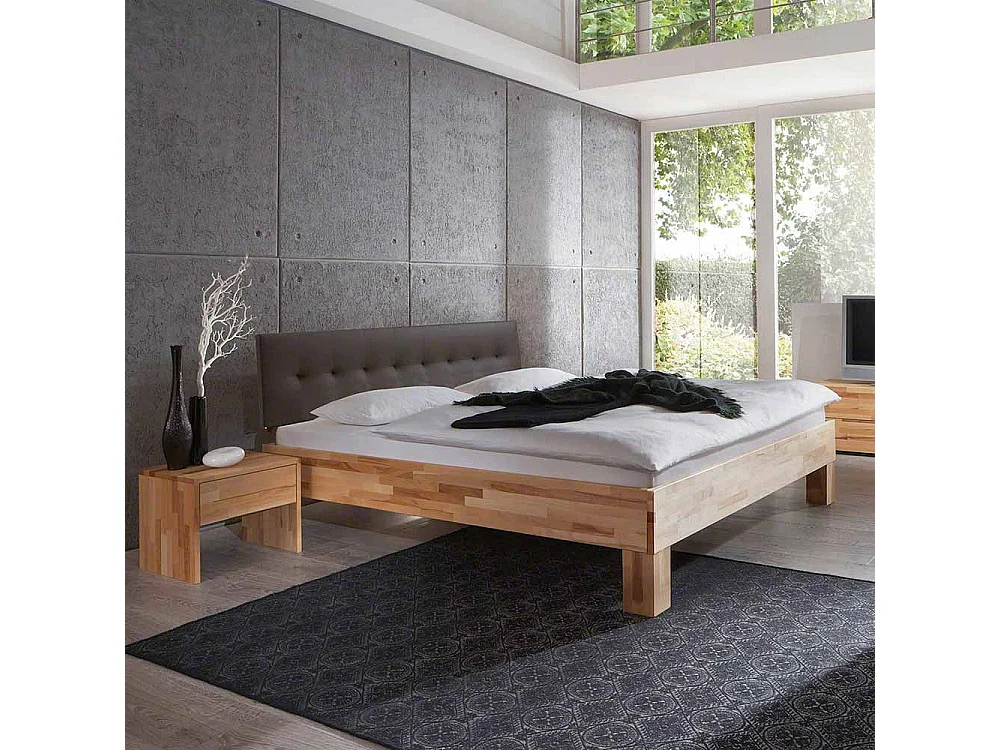 Massivholzbett mit gepolstertem Kopfteil in Dunkelbraun Kernbuche geölt
