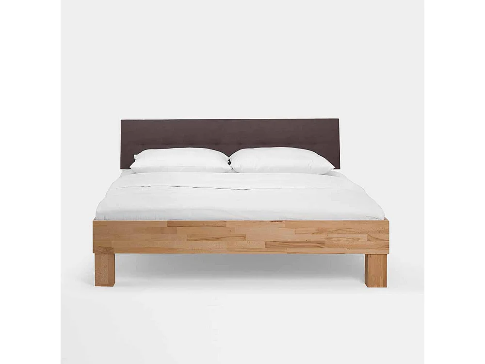 Massivholzbett mit gepolstertem Kopfteil in Dunkelbraun Kernbuche geölt