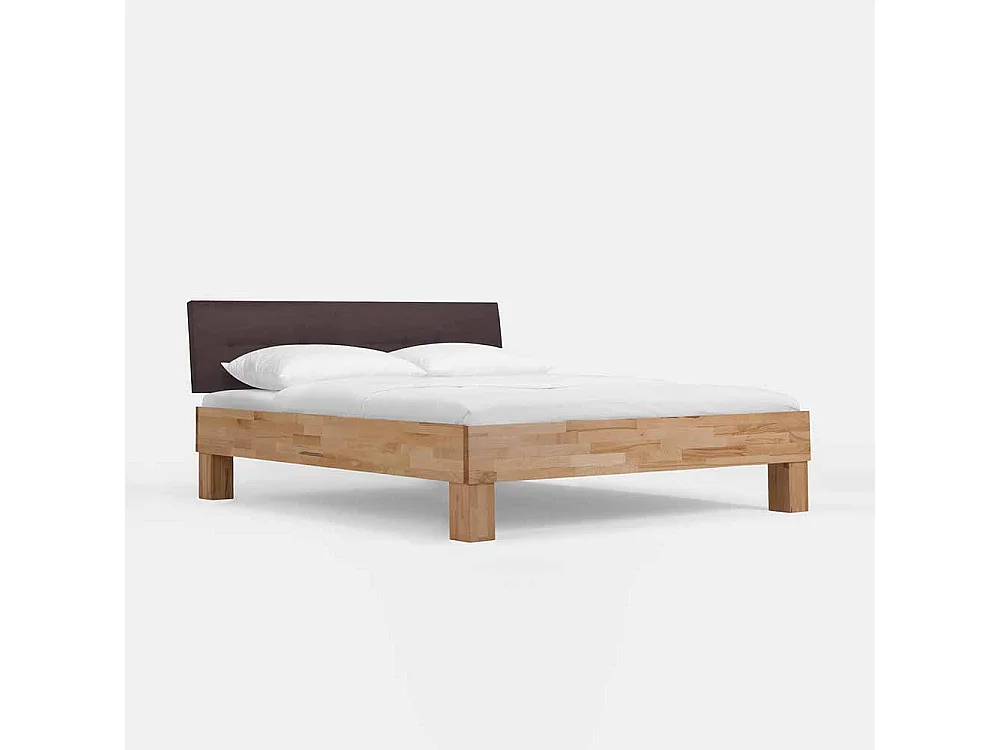 Massivholzbett mit gepolstertem Kopfteil in Dunkelbraun Kernbuche geölt