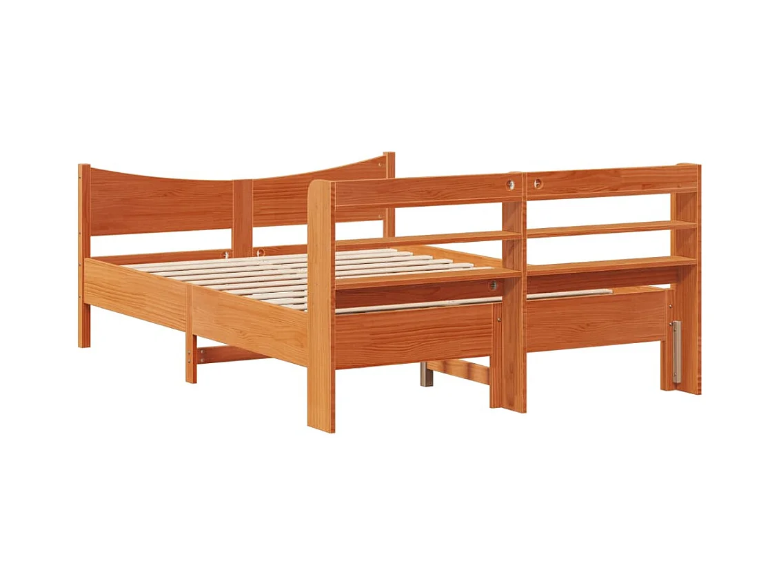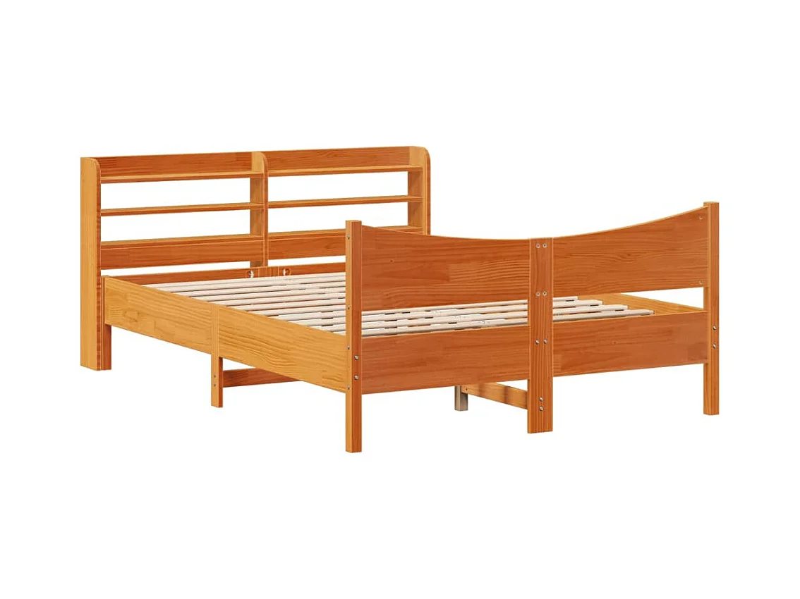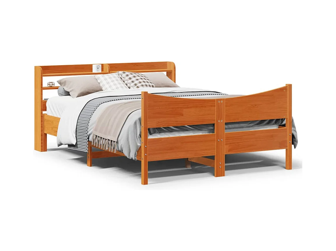Massivholzbett mit Kopfteil Wachsbraun 140x200 cm Kiefer