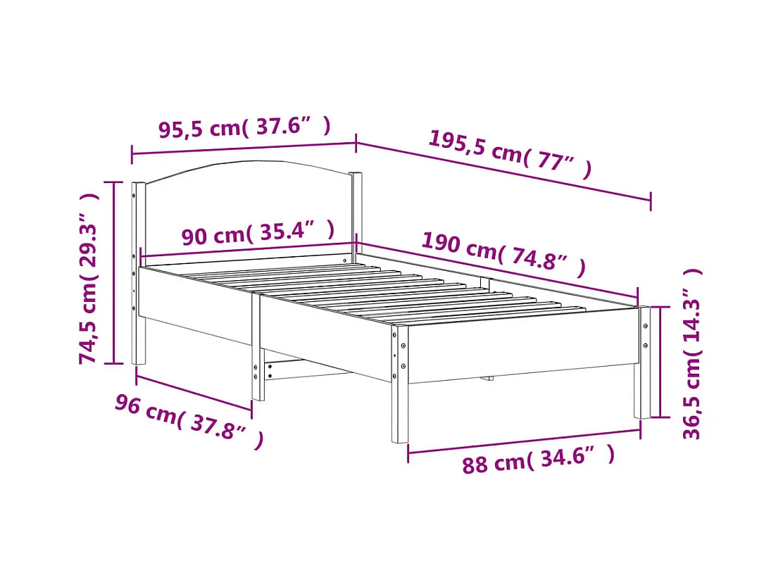 Massivholzbett ohne Matratze Wachsbraun 90x190 cm Kiefernholz