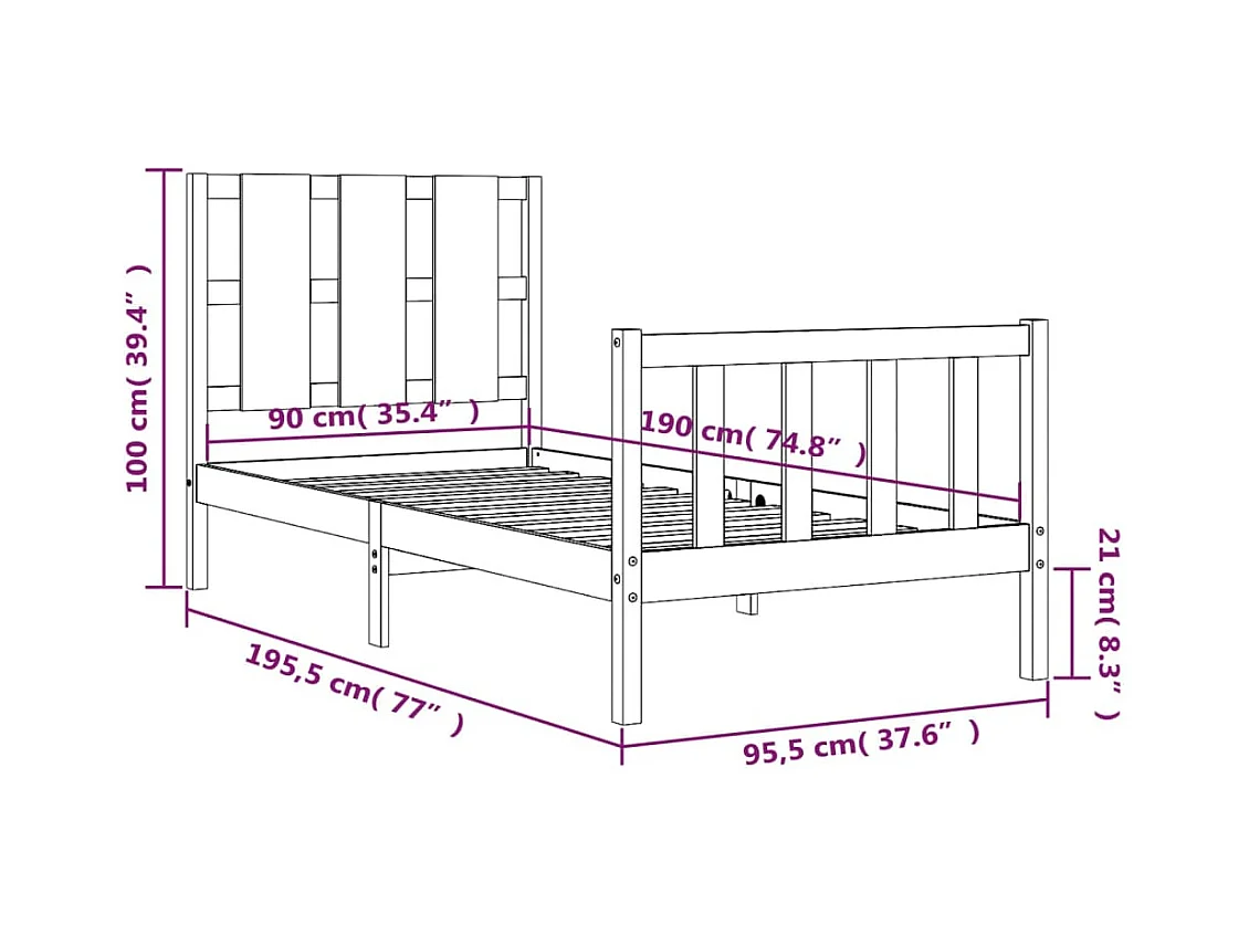 Massivholzbett ohne Matratze Weiß 90x190 cm Kiefernholz