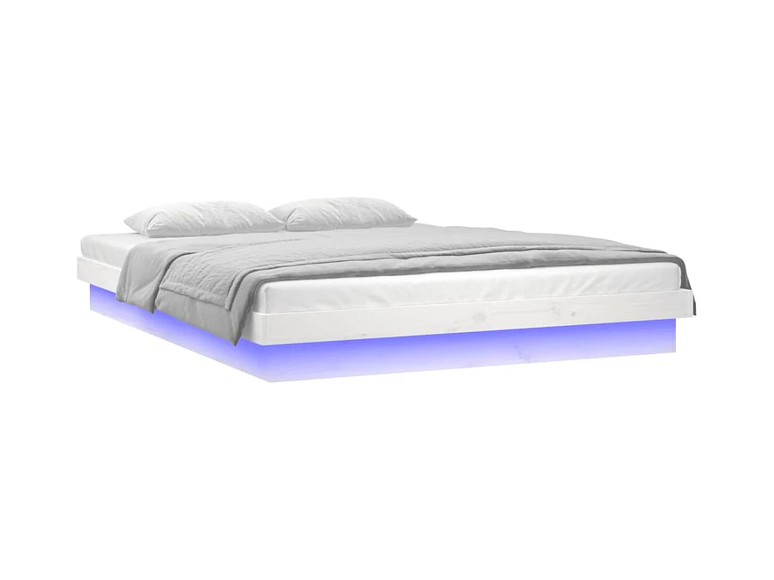 Massivholzbett mit LEDs Weiß 150x200 cm