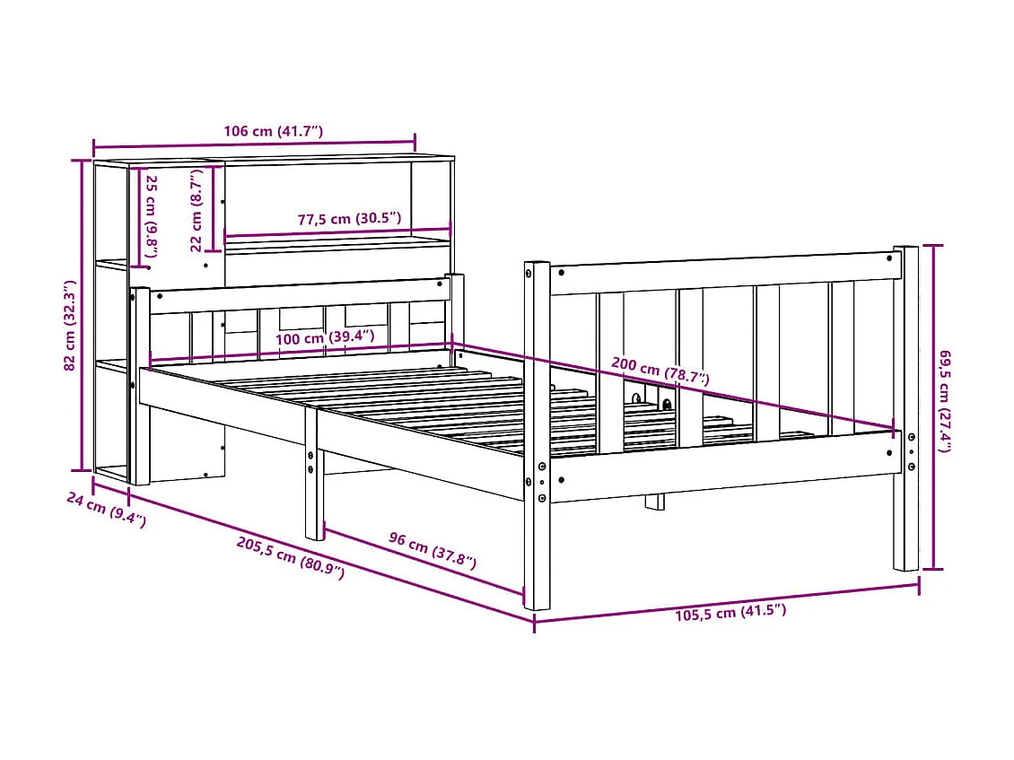 Massivholzbett mit Regal ohne Matratze 100x200 cm Kiefer