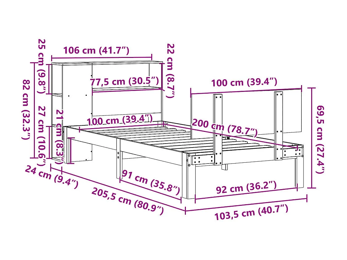 Massivholzbett mit Regal ohne Matratze 100x200 cm Kiefer