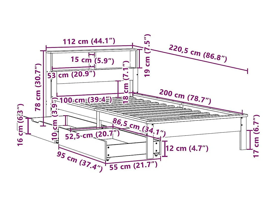 Massivholzbett mit Regal ohne Matratze 100x200 cm Kiefer