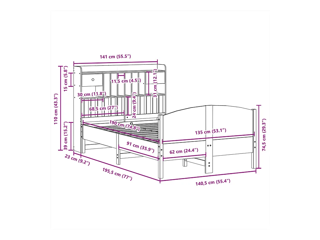 Massivholzbett mit Regal ohne Matratze 135x190 cm Kiefer