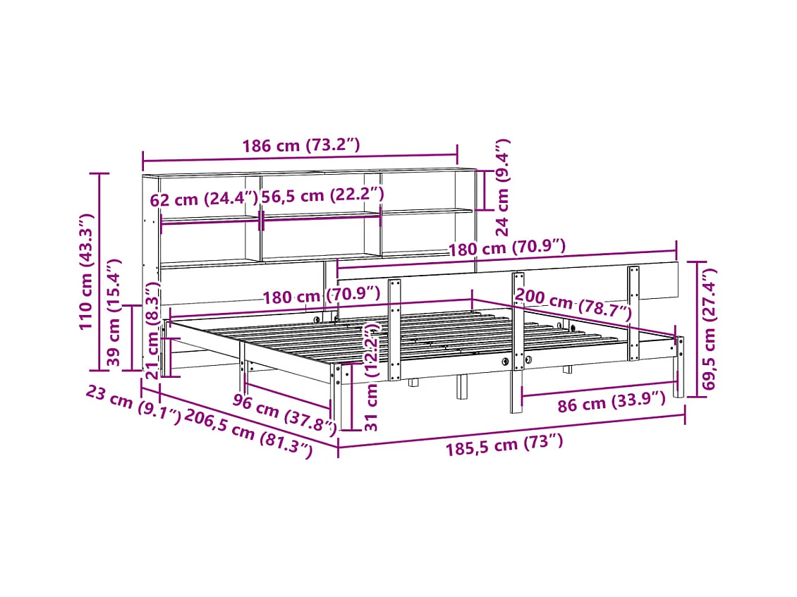 Massivholzbett mit Regal ohne Matratze 180x200 cm Kiefernholz