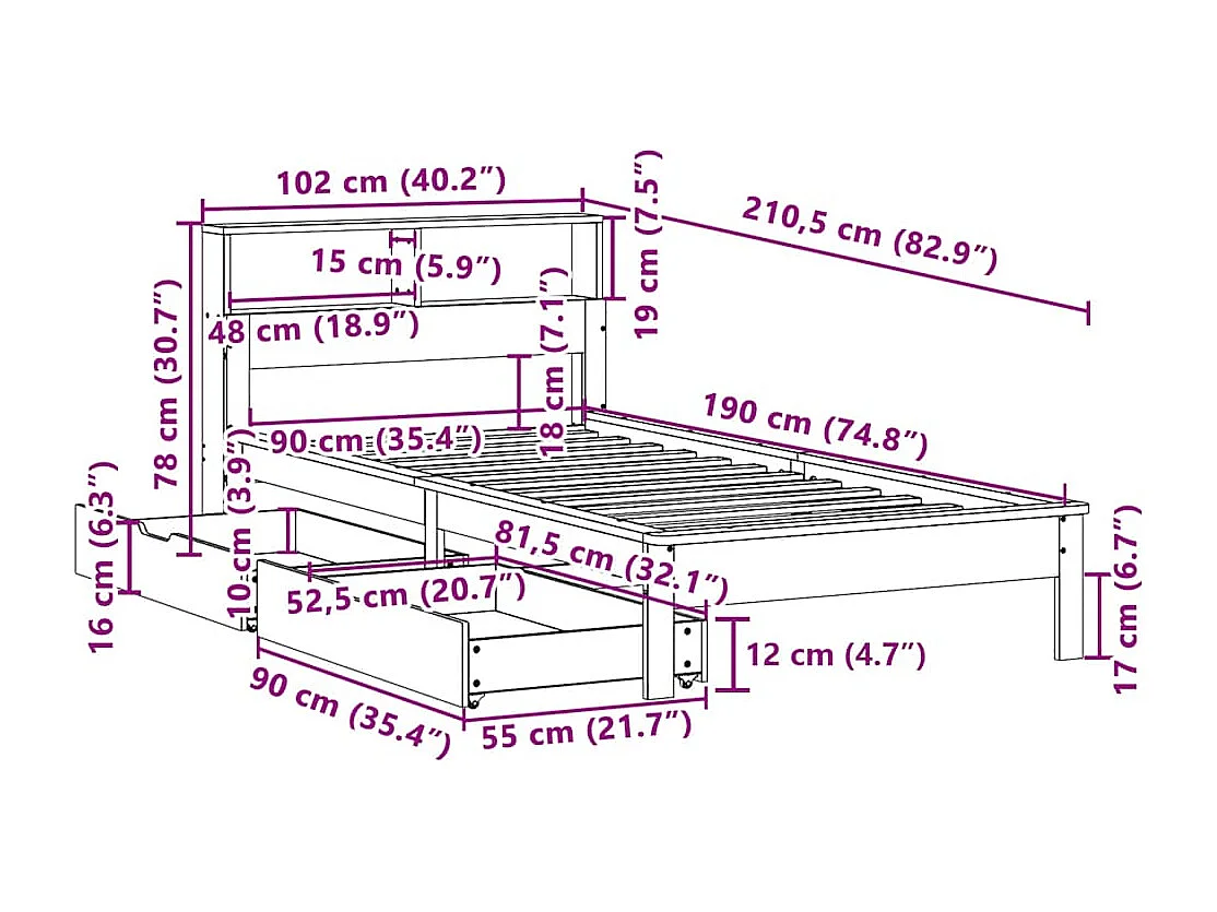 Massivholzbett mit Regal ohne Matratze 90x190 cm Kiefer