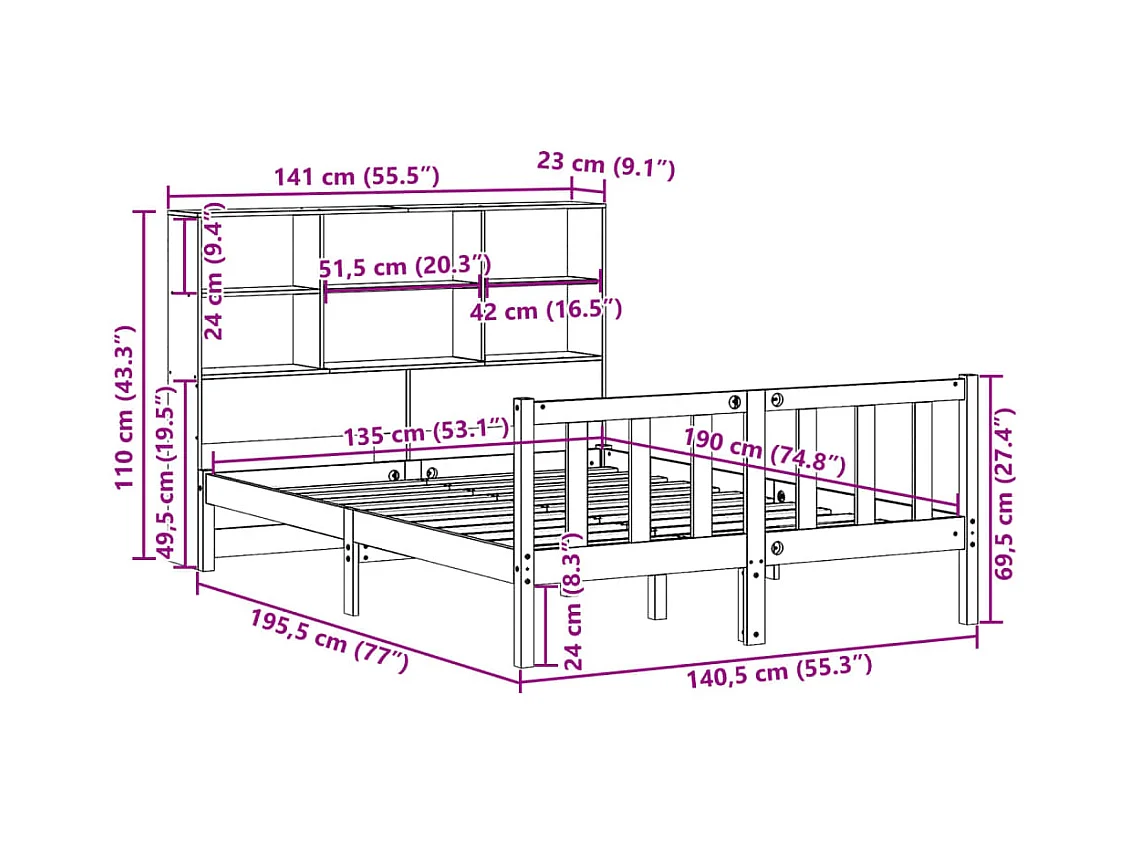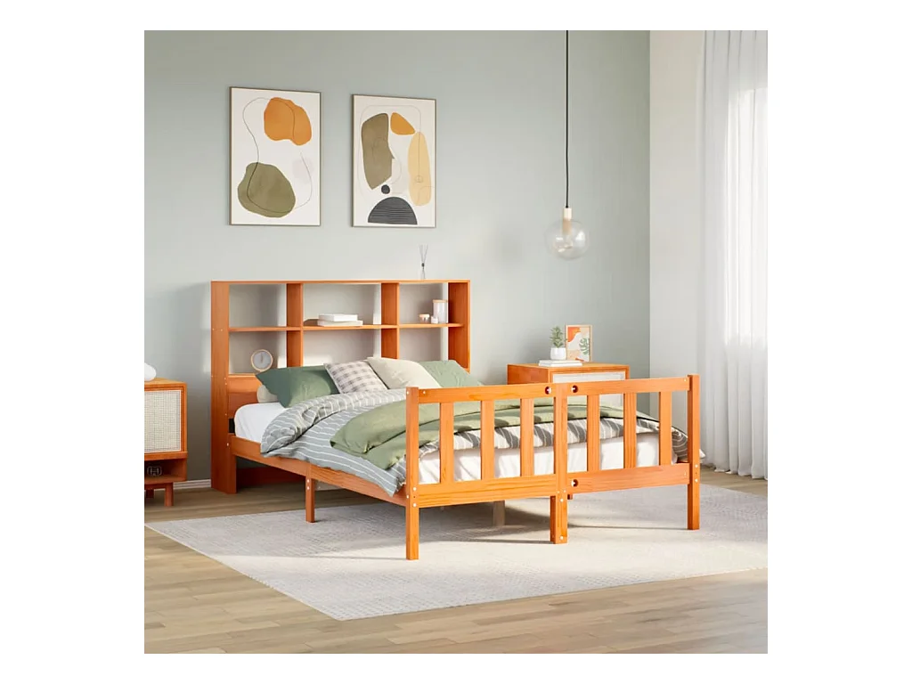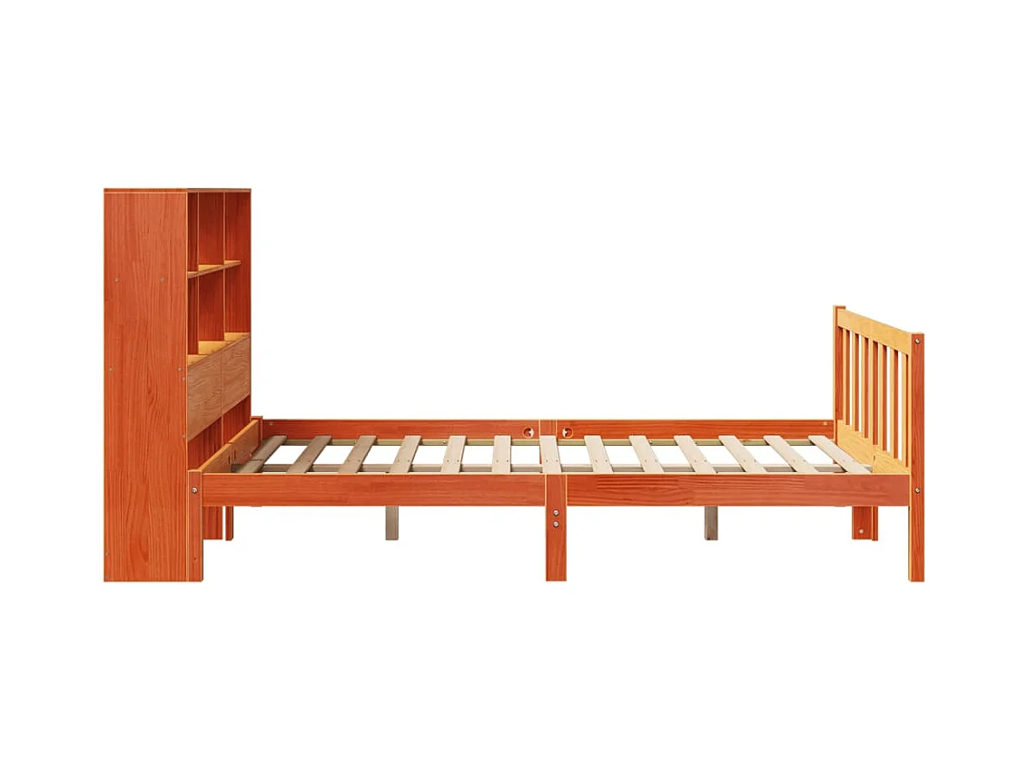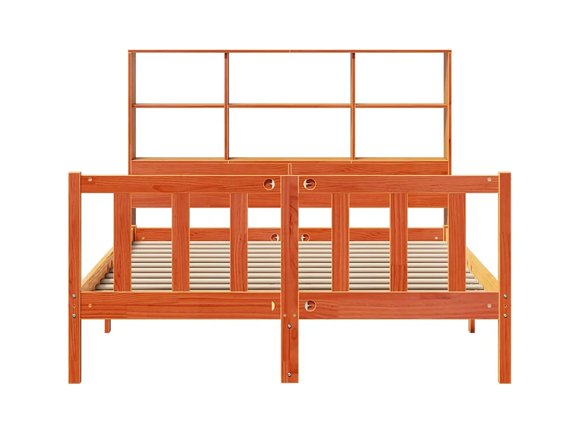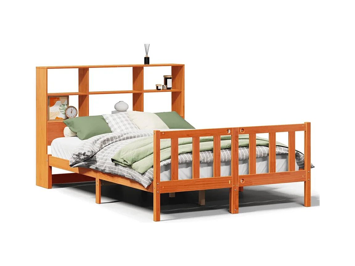 Massivholzbett mit Regal ohne Matratze Wachsbraun 135x190 cm