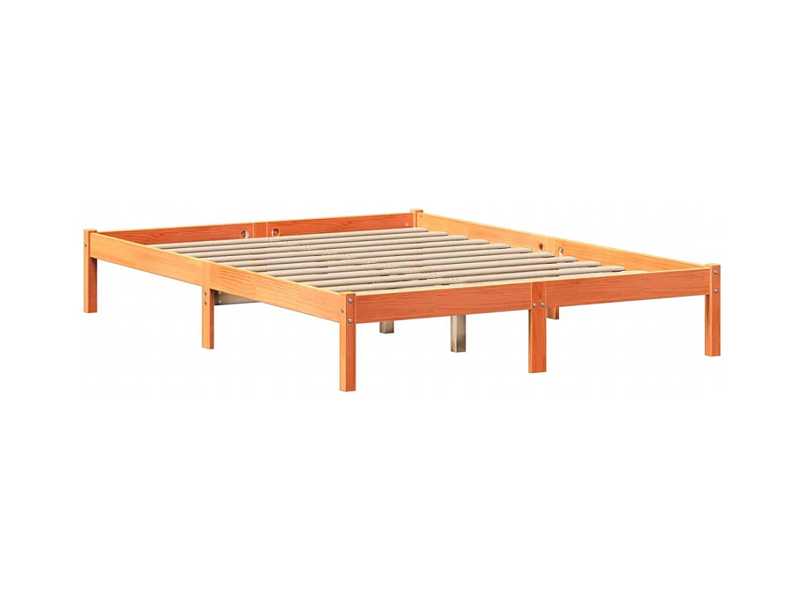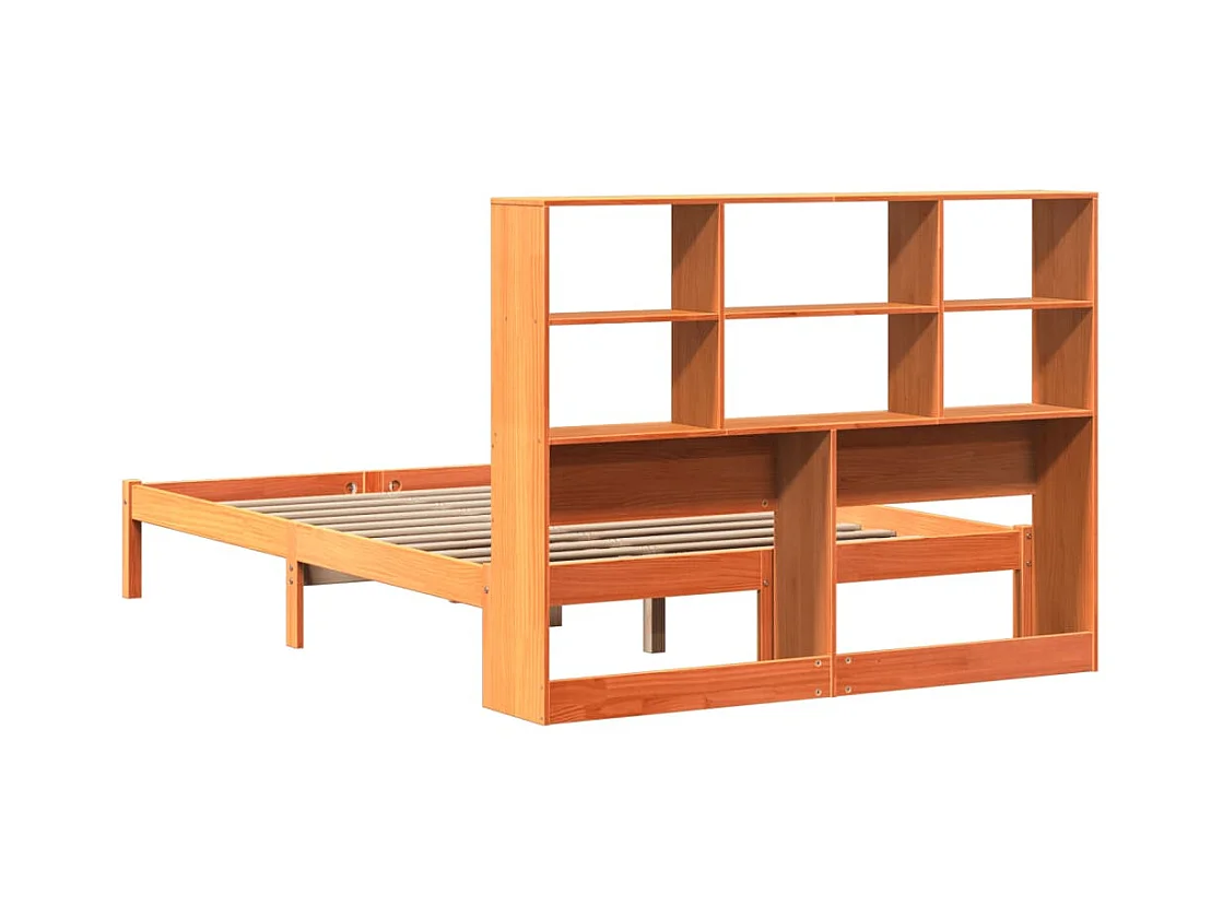 Massivholzbett mit Regal ohne Matratze Wachsbraun 140x200 cm