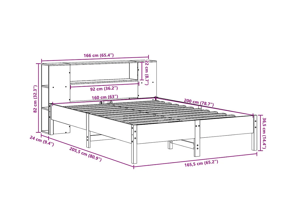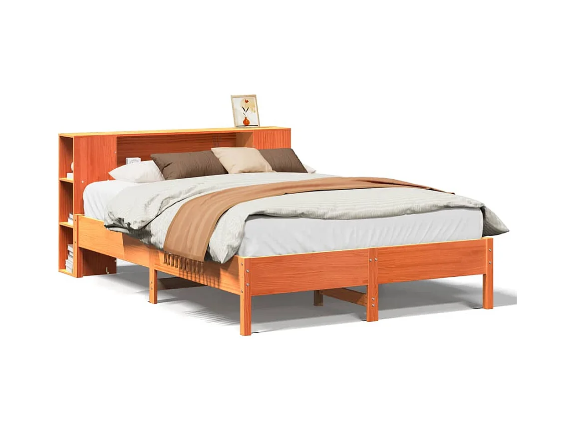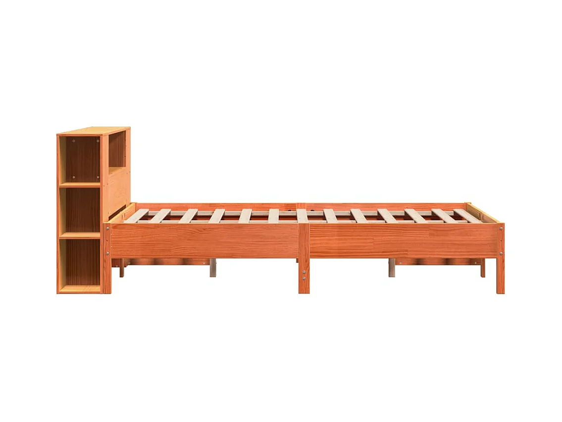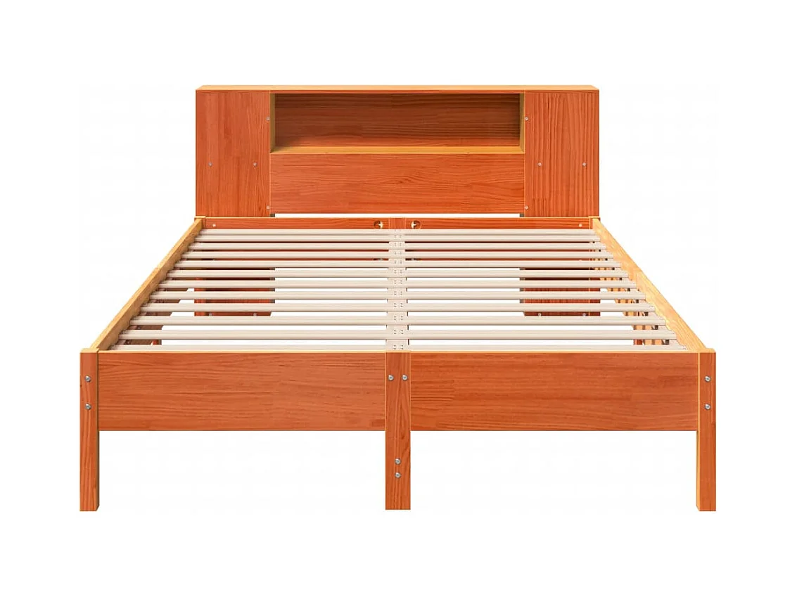 Massivholzbett mit Regal ohne Matratze Wachsbraun 160x200 cm