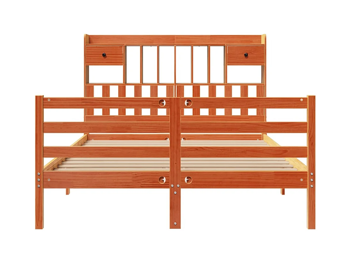Massivholzbett mit Regal ohne Matratze Wachsbraun 160x200 cm