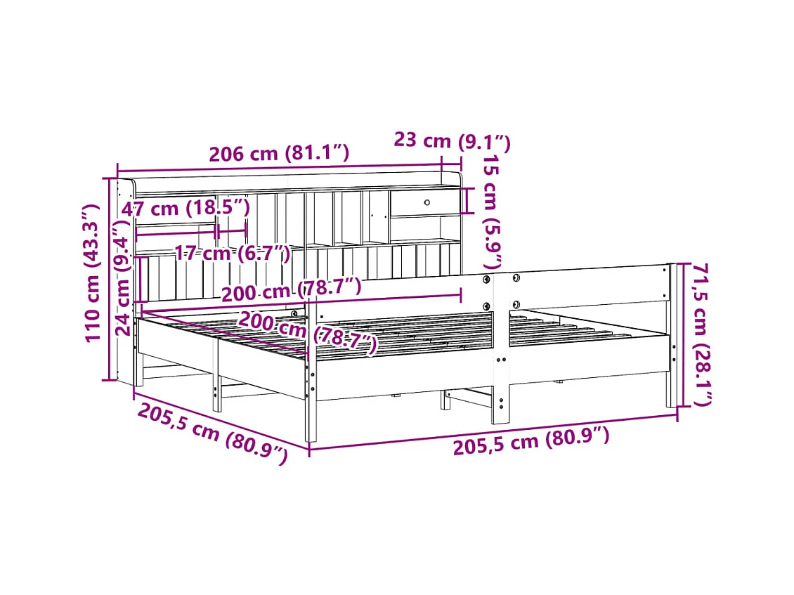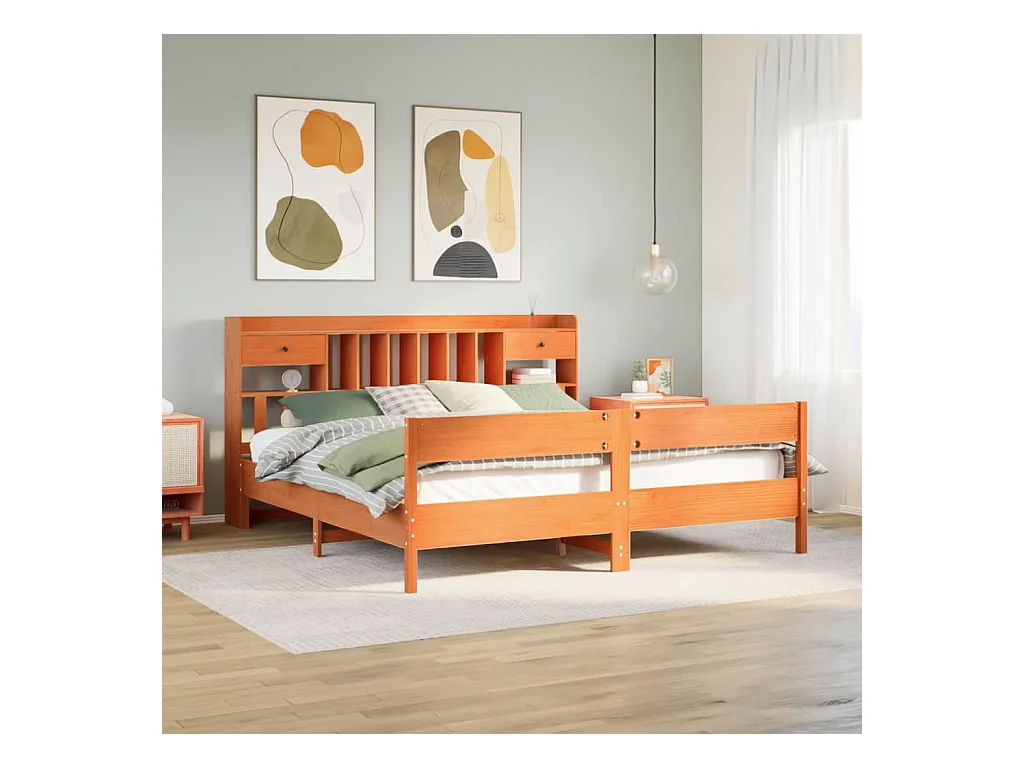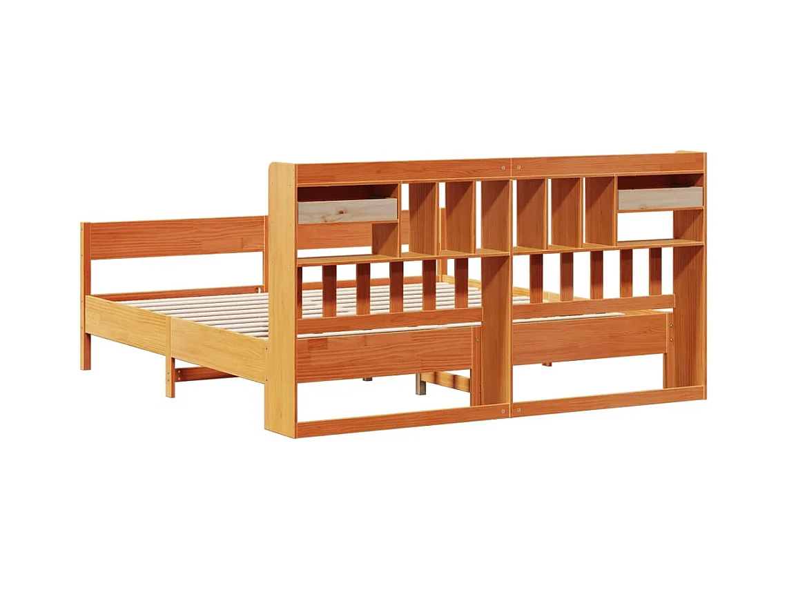 Massivholzbett mit Regal ohne Matratze Wachsbraun 200x200 cm