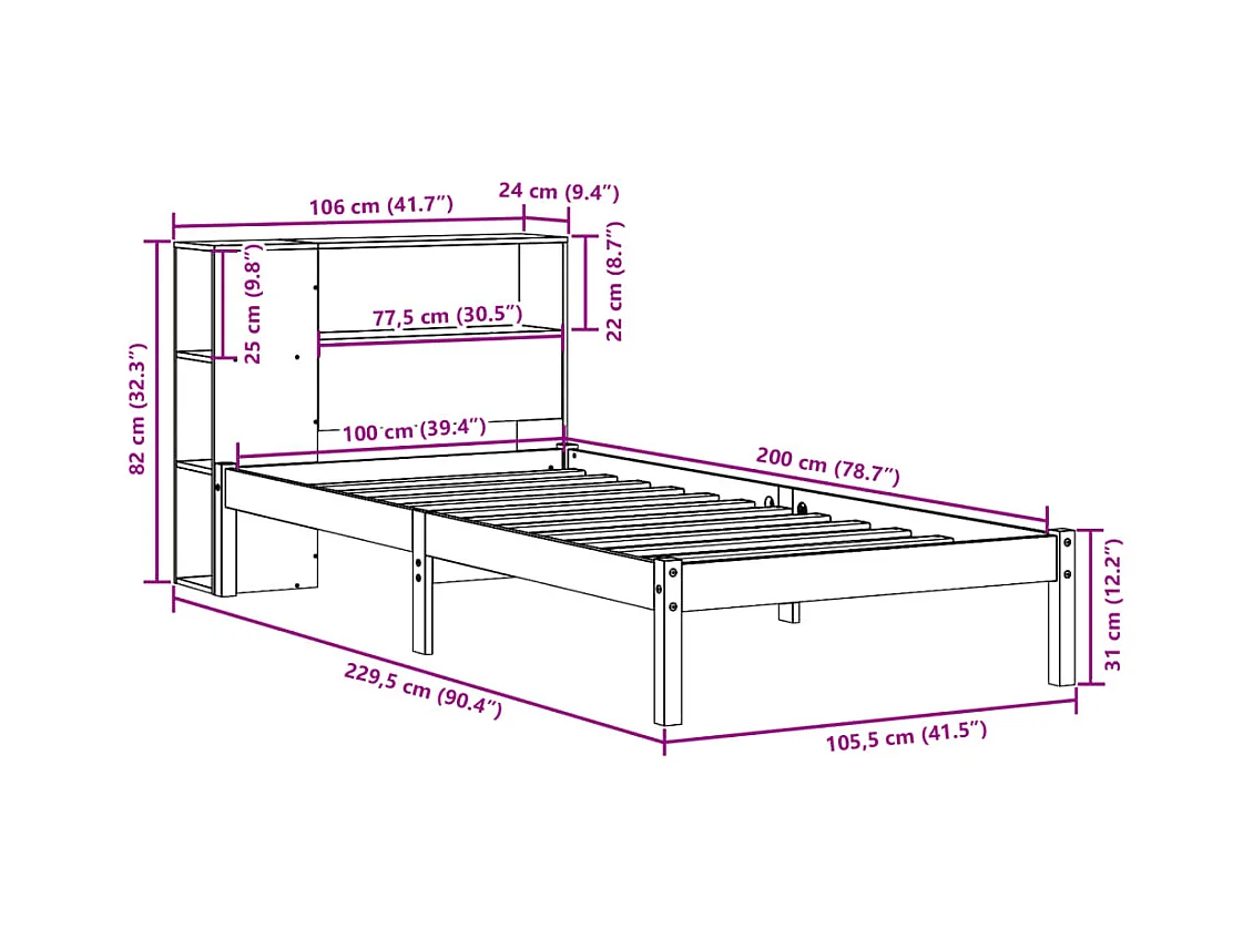 Massivholzbett mit Regal ohne Matratze Weiß 100x200 cm Kiefer