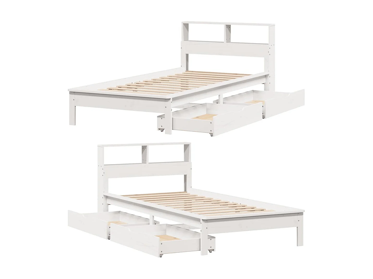 Massivholzbett mit Regal ohne Matratze Weiß 100x200 cm Kiefer