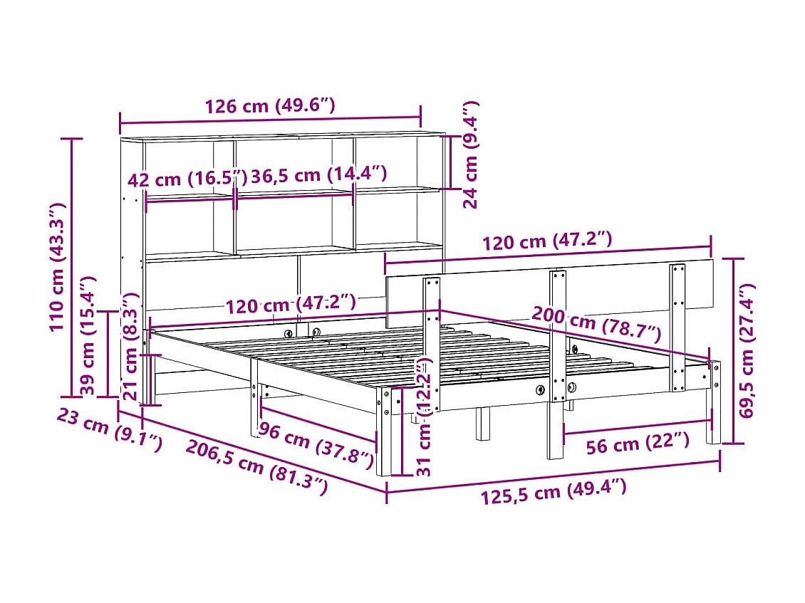 Massivholzbett mit Regal ohne Matratze Weiß 120x200 cm Kiefer
