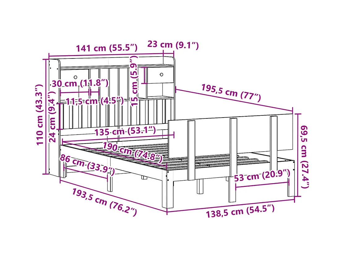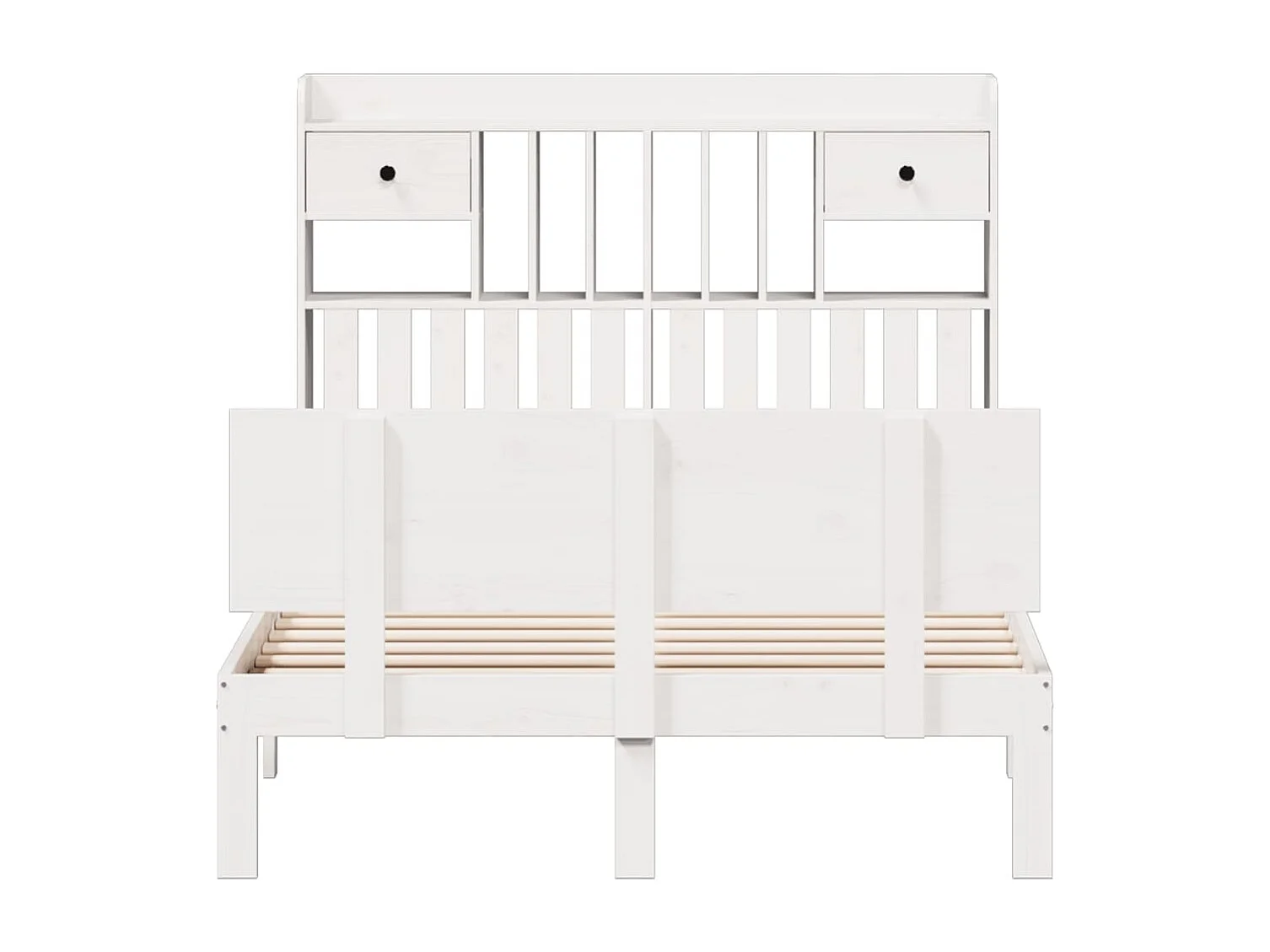 Massivholzbett mit Regal ohne Matratze Weiß 135x190 cm Kiefer
