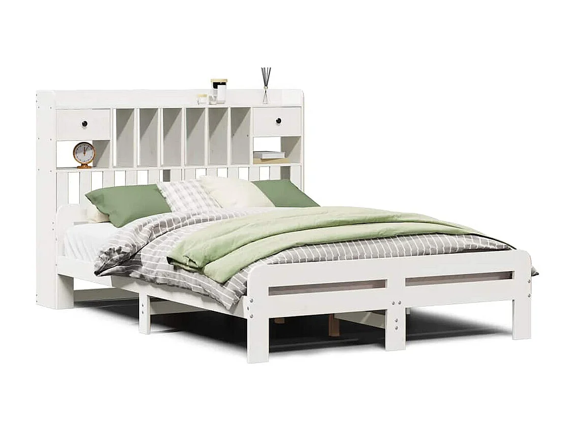 Massivholzbett mit Regal ohne Matratze Weiß 140x190 cm Kiefer
