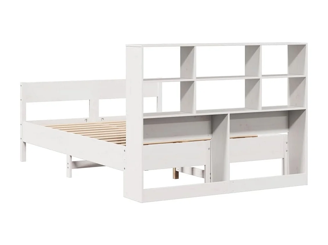 Massivholzbett mit Regal ohne Matratze Weiß 140x200 cm Kiefer