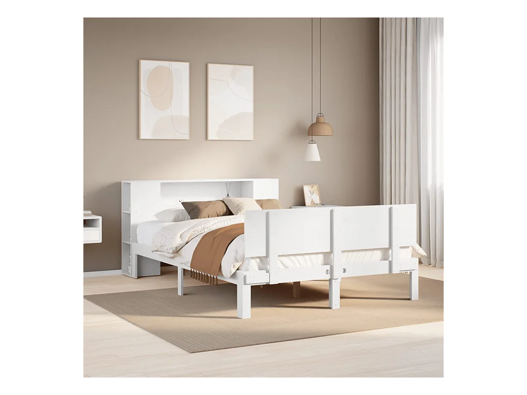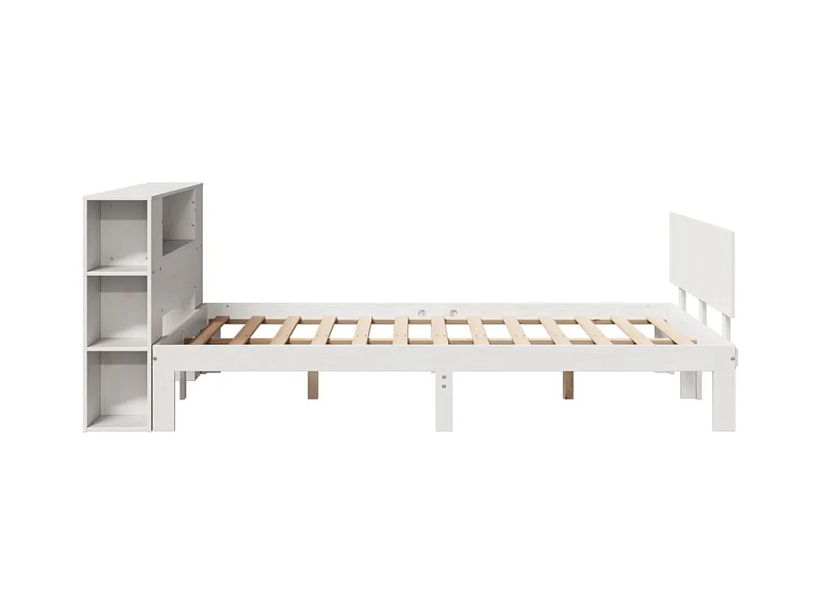 Massivholzbett mit Regal ohne Matratze Weiß 150x200 cm Kiefer