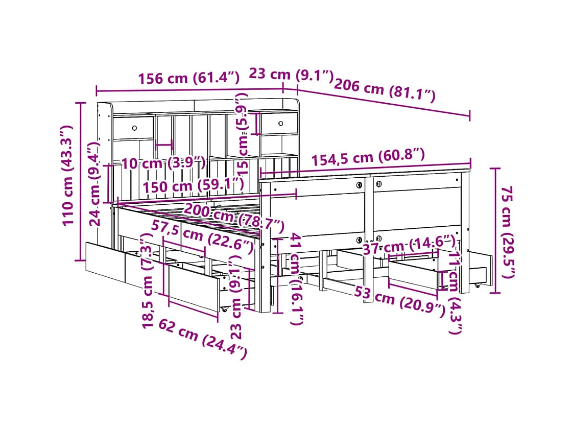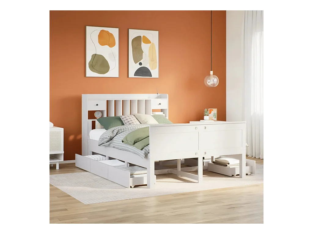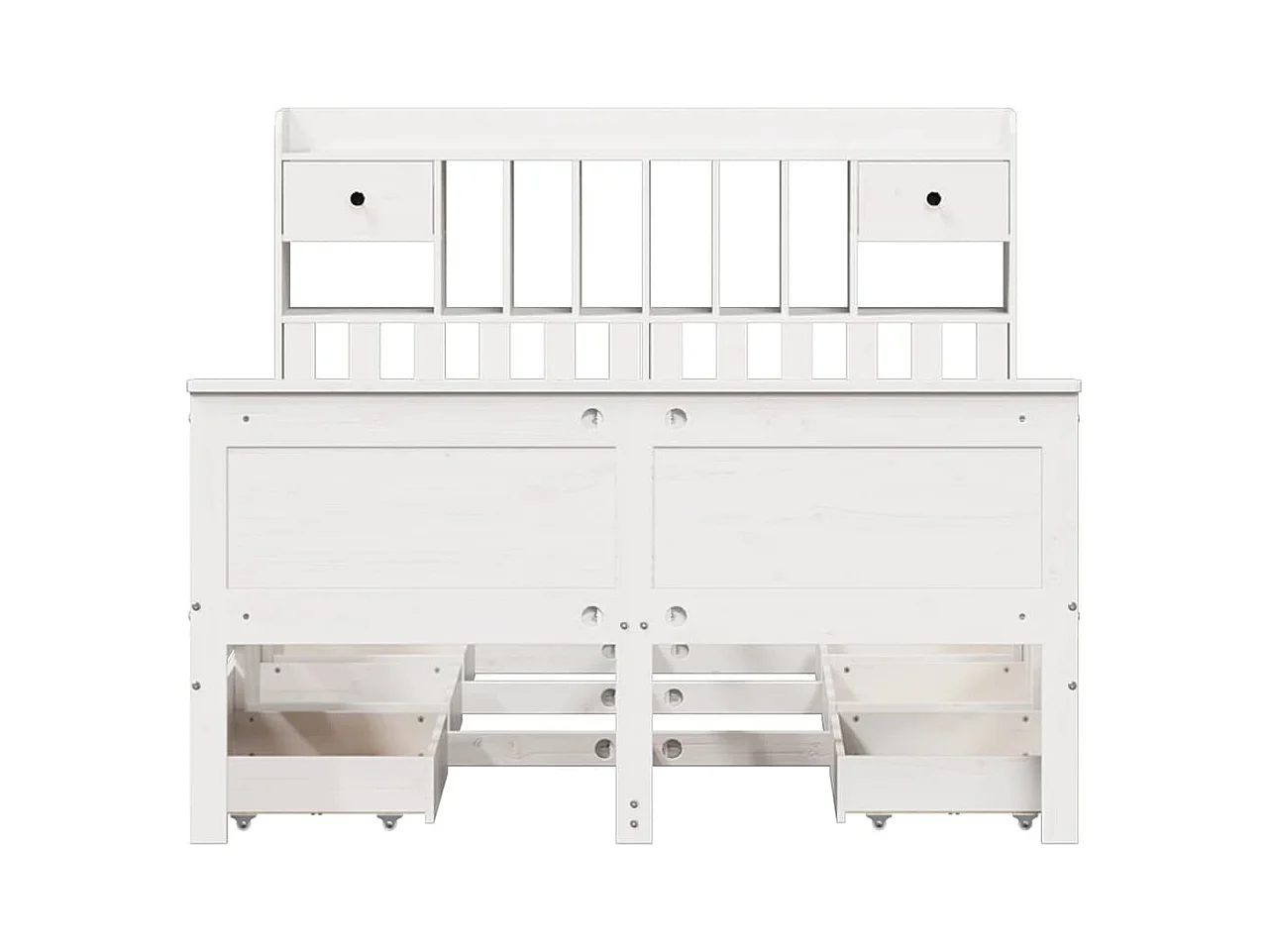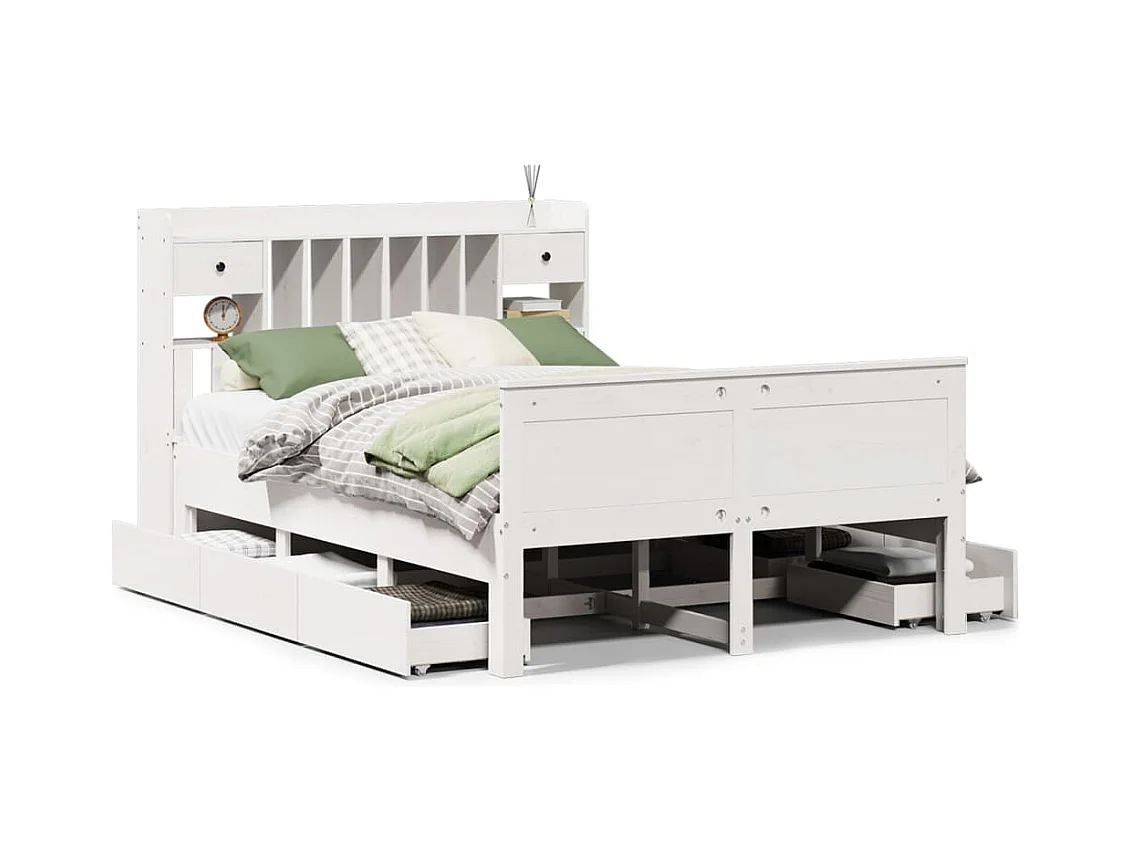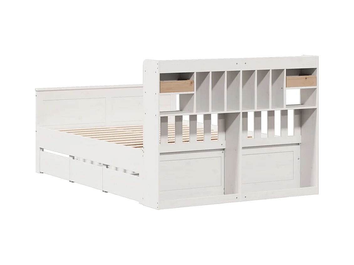 Massivholzbett mit Regal ohne Matratze Weiß 150x200 cm Kiefer