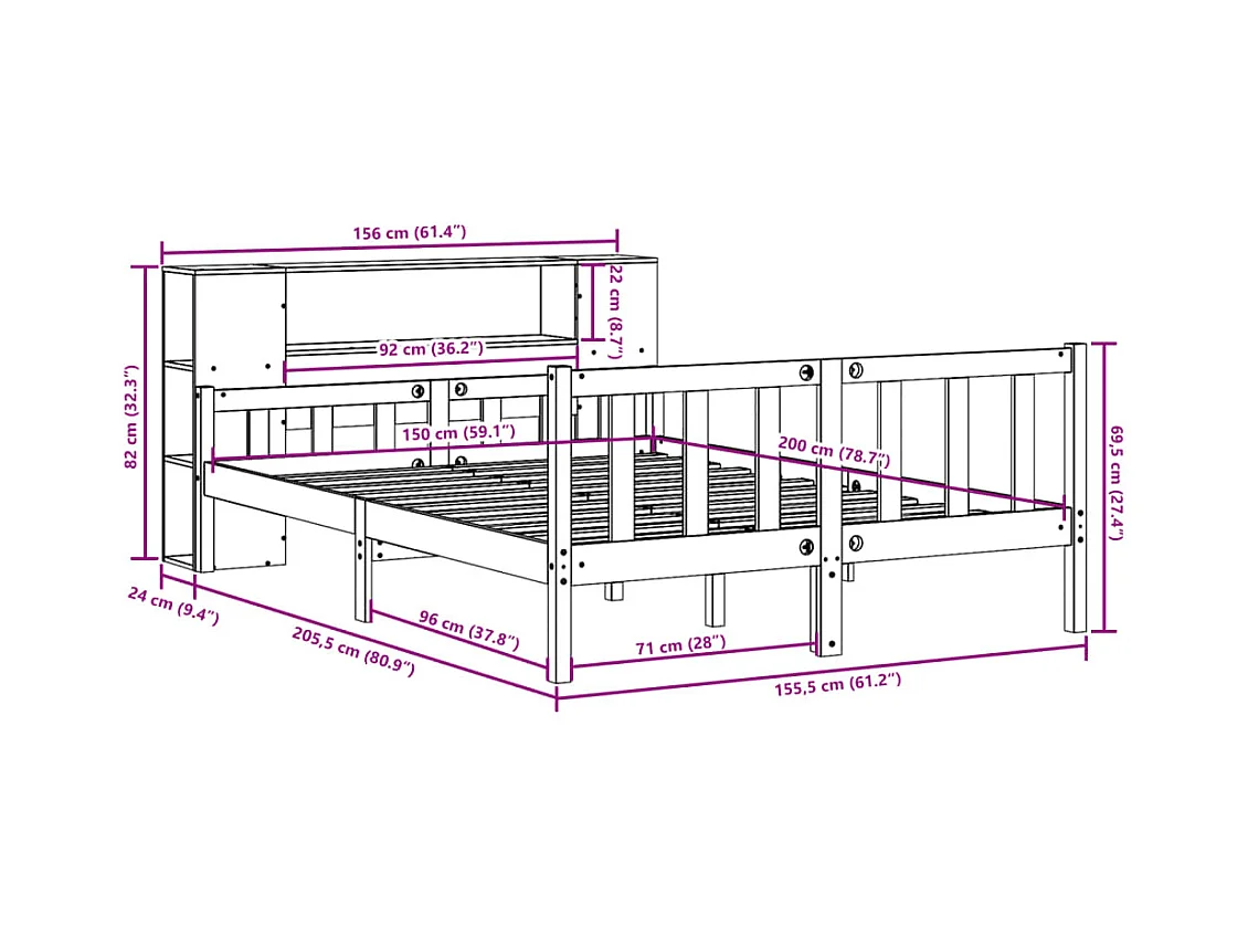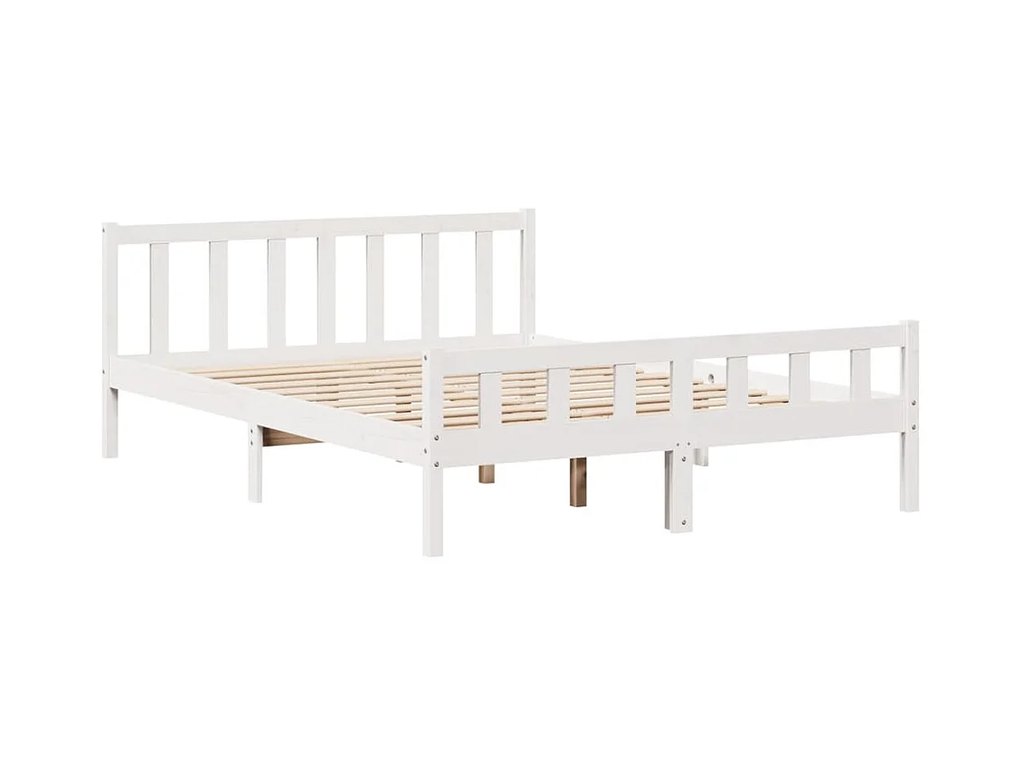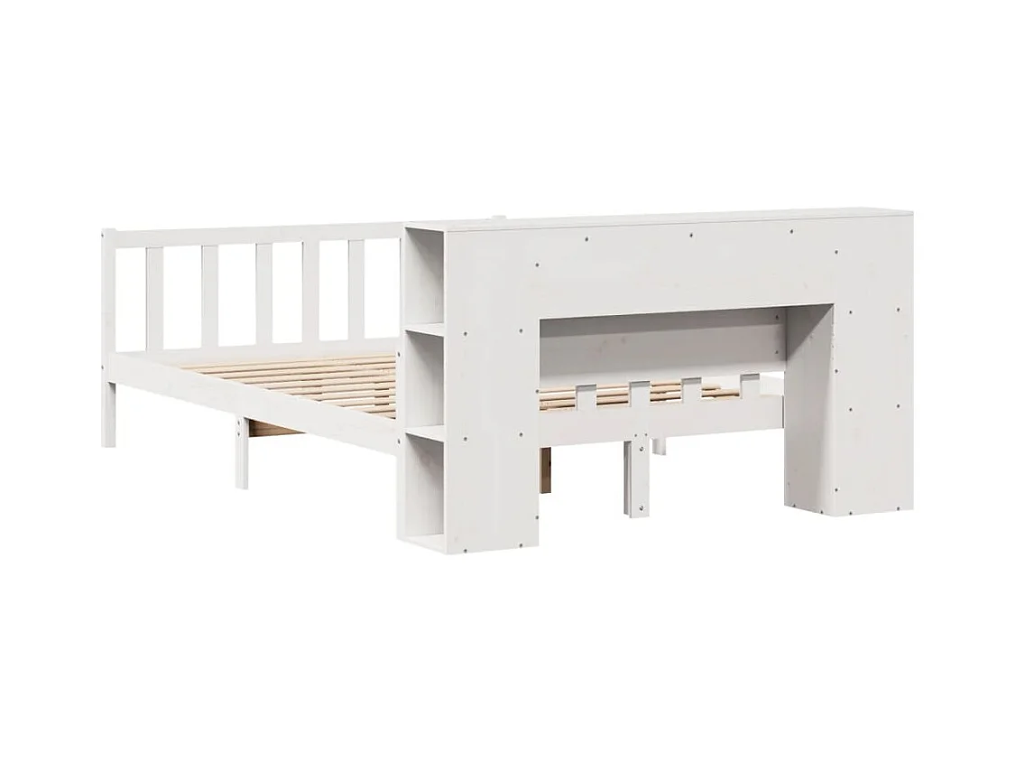 Massivholzbett mit Regal ohne Matratze Weiß 150x200 cm Kiefer