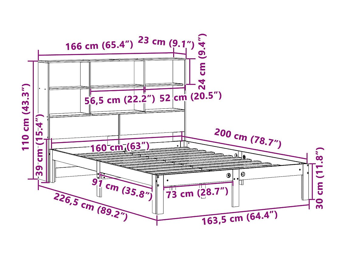 Massivholzbett mit Regal ohne Matratze Weiß 160x200 cm Kiefer
